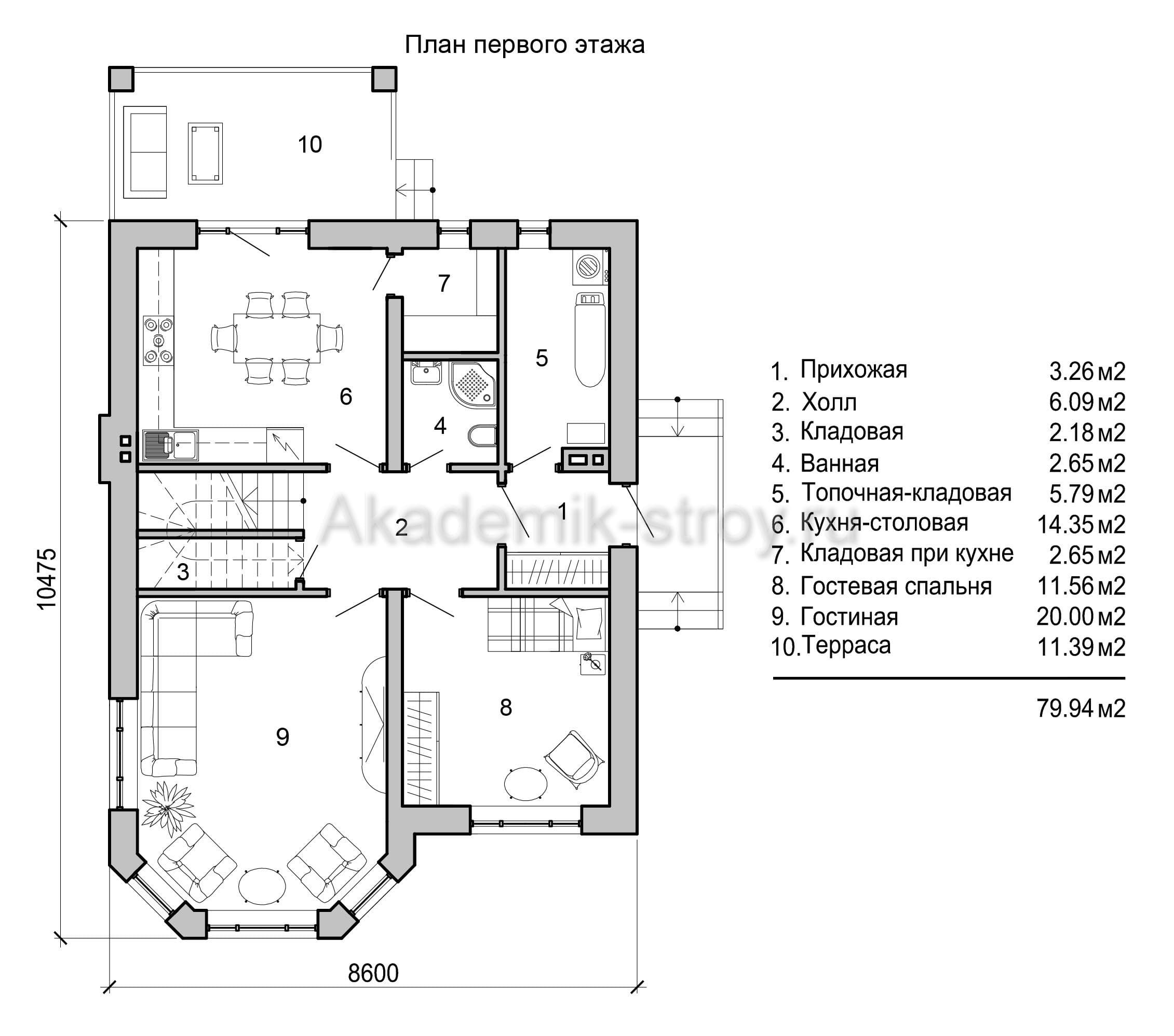 Размеры дома 9 на 11 метров позволяют достаточно легко вписать постройку в различные ландшафтные условия, при этом сохраняя удобные внутренние планировки. Небольшой, но эффективный по площади фундамент снижает затраты на строительство и облегчает процесс возведения дома. Внутренняя организация пространства создана так, чтобы обеспечить максимальную эргономику и удобство использования каждого квадратного метра.
