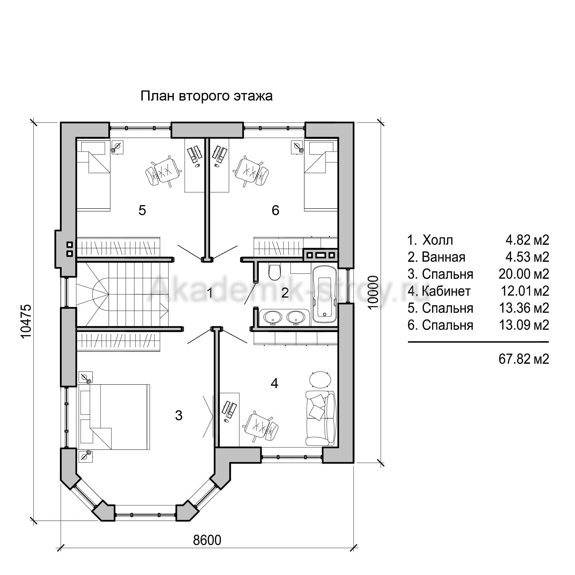 Два этажа позволяют четко разделить жилые зоны. Например, в проекте с тремя спальнями обе зоны отдыха находятся на втором этаже, что позволяет отделить их от активных дневных зон первого этажа. Это обеспечивает комфорт и приватность для всех членов семьи. Зачастую в таких домах на первом этаже располагают гостиную, кухню, столовую и рабочий кабинет, оставляя второй этаж под спальни и санитарные помещения.