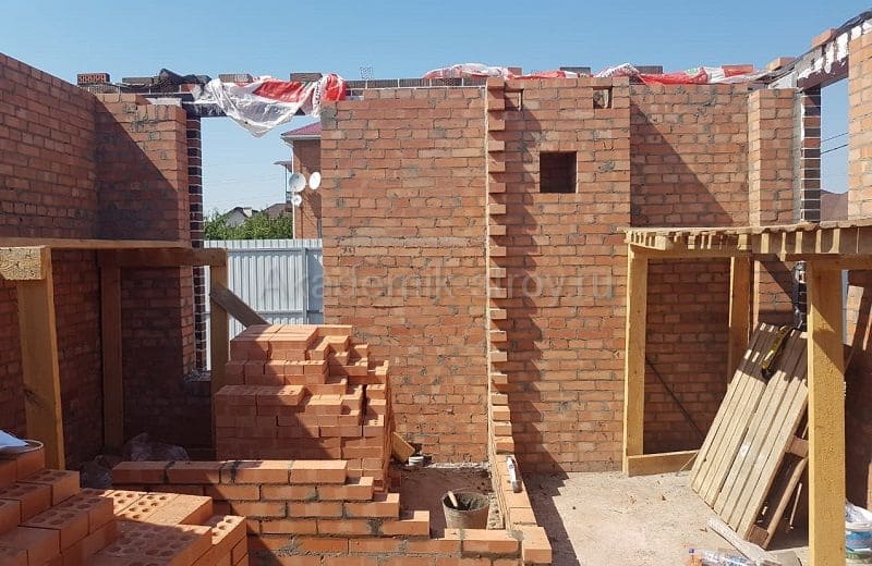 - Возведение стен и перекрытий — формирование основных объемов дома;