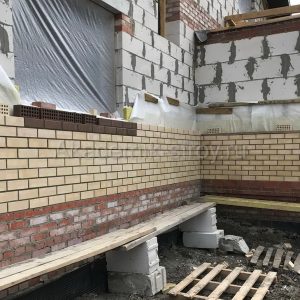Стены могут быть возведены из газобетона, кирпича, керамических блоков или дерева — выбор зависит от бюджета и желаемого уровня теплоизоляции. Толщина стен обычно составляет от 30 до 40 см для обеспечения нужных показателей теплопроводности и звукоизоляции.