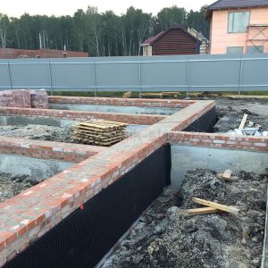 Квадратная форма дома обеспечивает равномерную нагрузку на фундамент. Чаще всего используется ленточный фундамент, который подходит под любой тип почвы, обеспечивая надежную опору для двух этажей. Важно правильно рассчитать глубину и ширину фундамента, учитывая тип грунта и климатические особенности региона.