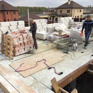 - Возведение стен и перекрытий — установка несущих конструкций и межэтажных перекрытий.