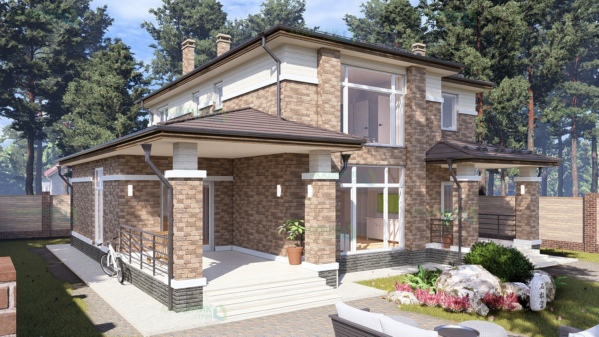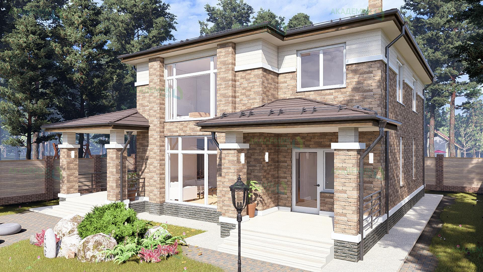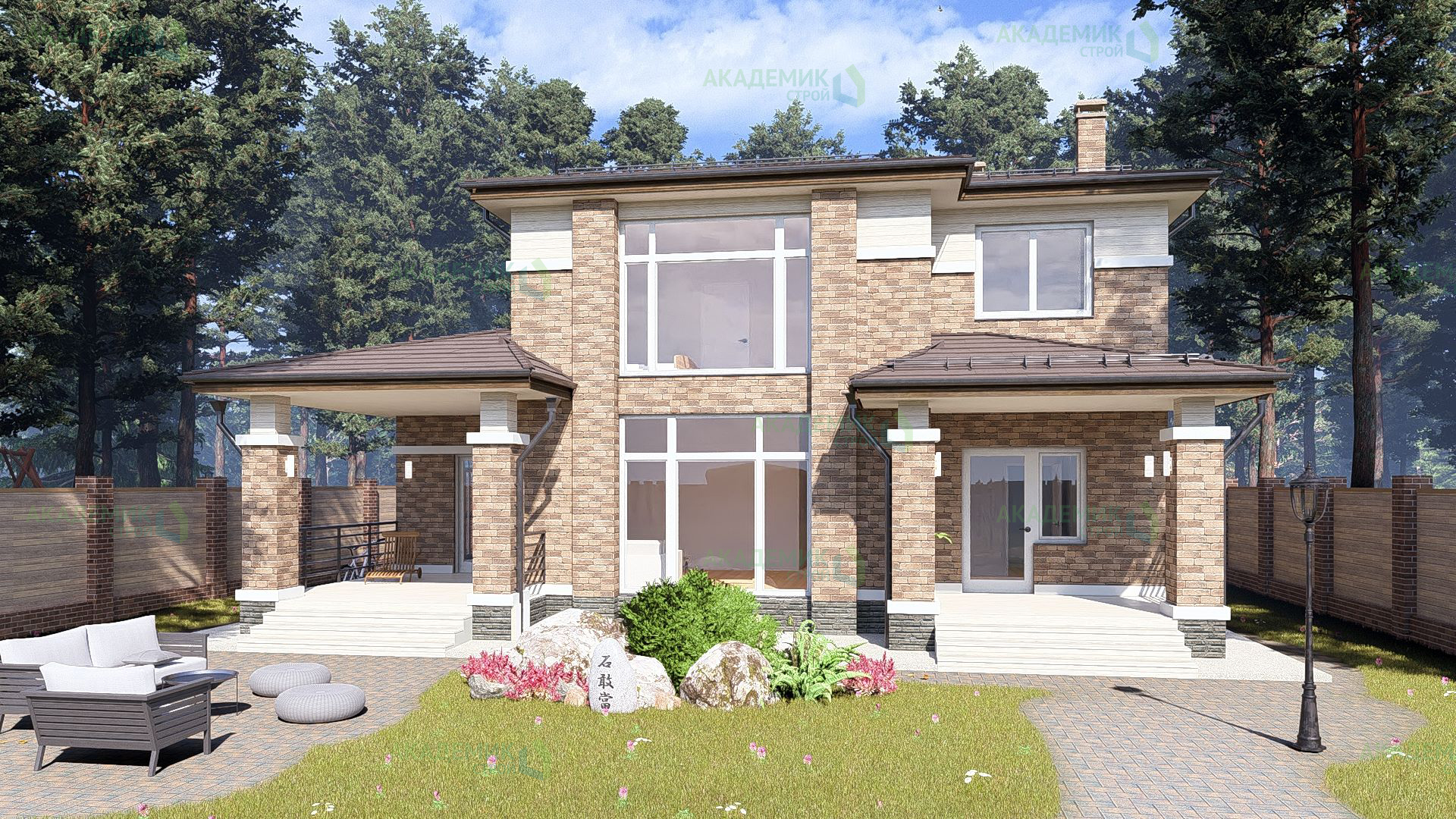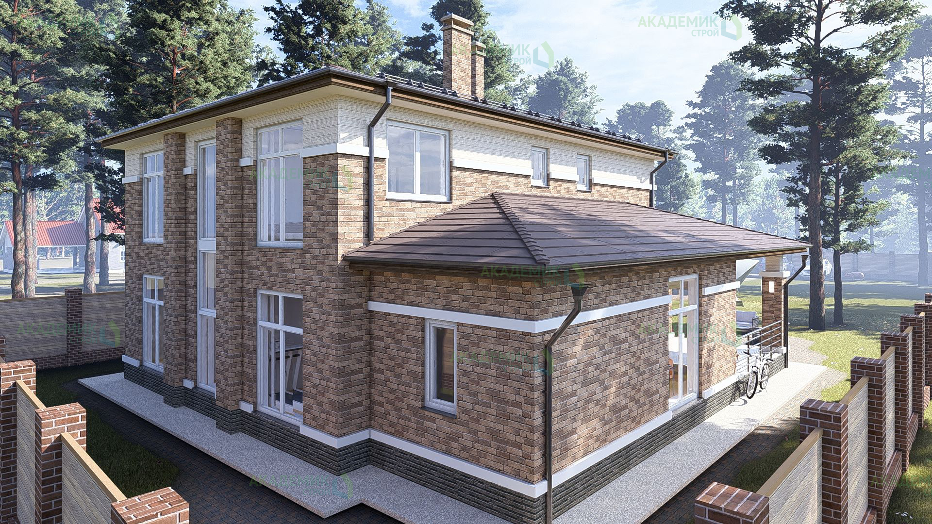 Подобная цена также учитывает территорию вокруг здания, если в проекте предусмотрены дополнительные элементы благоустройства участка.