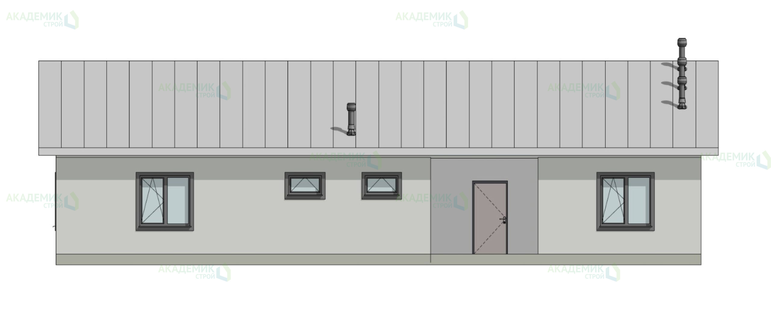 Одноэтажный дом ВС-119 отличается простотой и экономичностью в строительстве. Отсутствие второго этажа снижает нагрузки на фундамент и позволяет использовать более простые инженерные решения. Кроме того, одноэтажный дом легче адаптируется под потребности людей с ограниченной мобильностью — отсутствие лестниц обеспечивает легкий доступ ко всем помещениям.