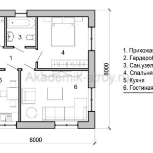 Рассмотрим основные помещения, которые можно расположить в доме 8х8 м: