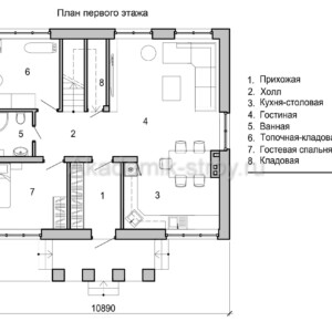 | Первый этаж | Гостиная, кухня, столовая, санузел, техническое помещение | Общая зона для семейных и гостевых встреч, кулинария, бытовые задачи |