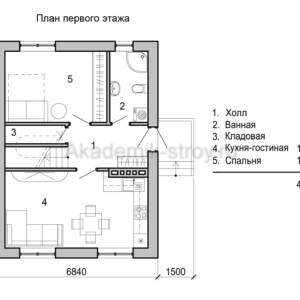 | Первый этаж | Гостиная с зоной столовой, кухня, санузел, прихожая, возможно небольшой кладовой |