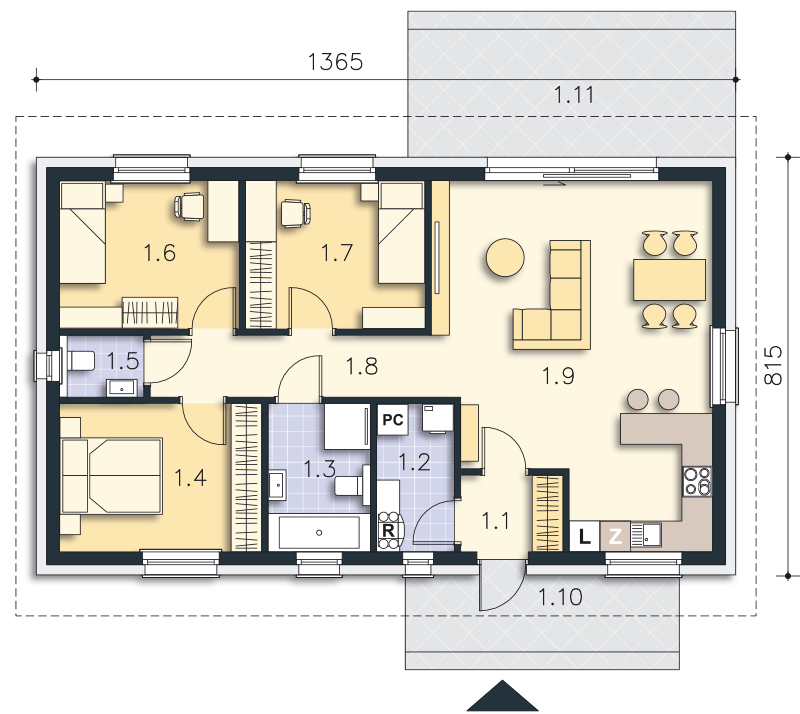 Одноэтажный дом 13x8 - 87.23 м2 за руб.
