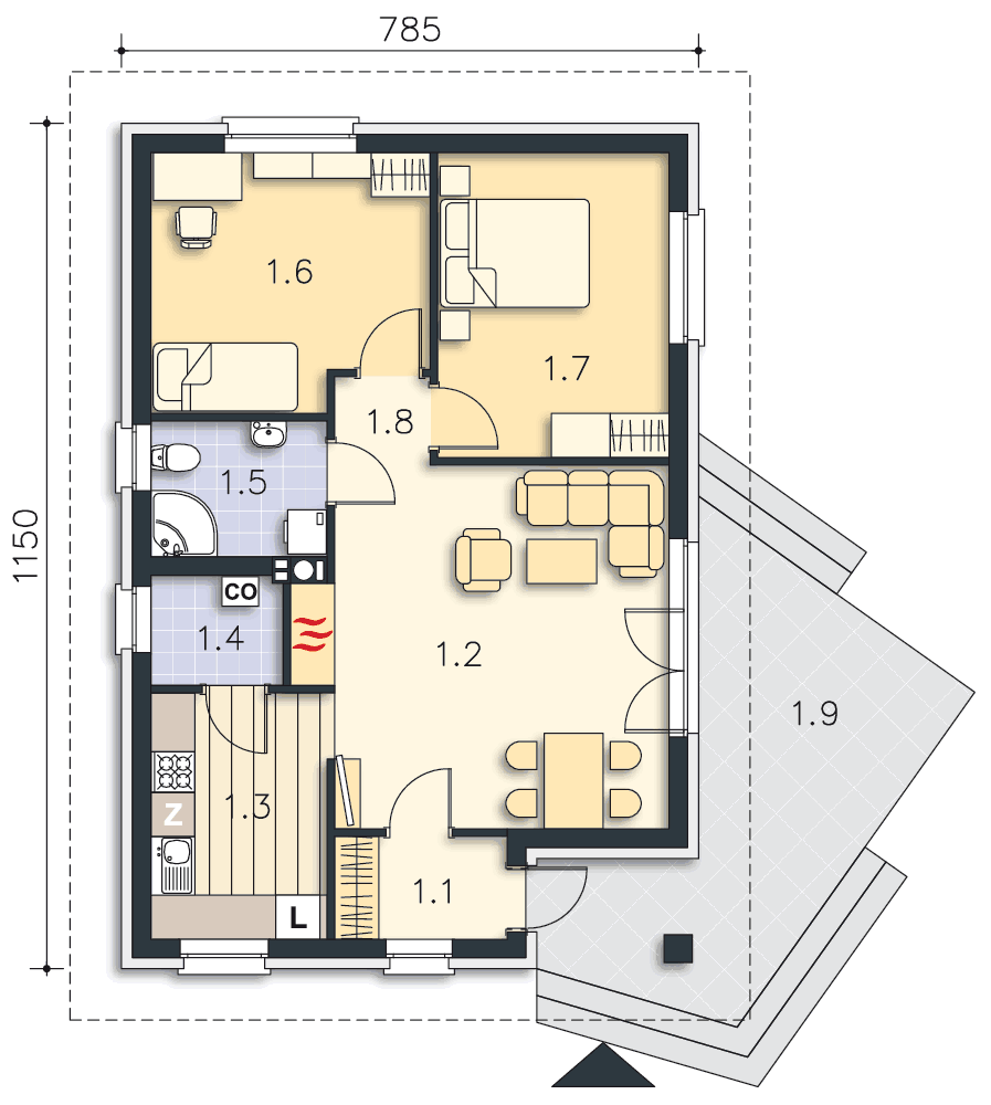 Одноэтажный дом 7x11 - 68.77 м2 за руб.