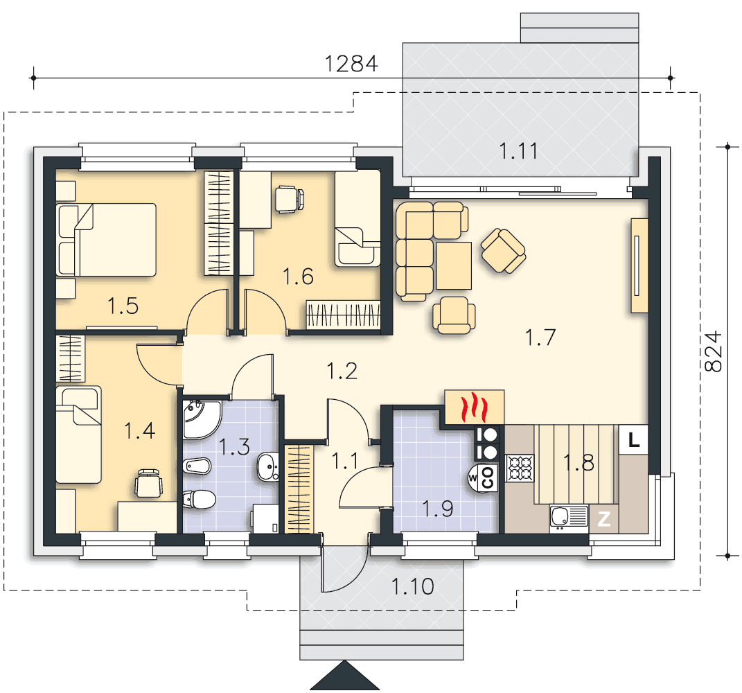 Одноэтажный дом 12x8 - 80.13 м2 за руб.