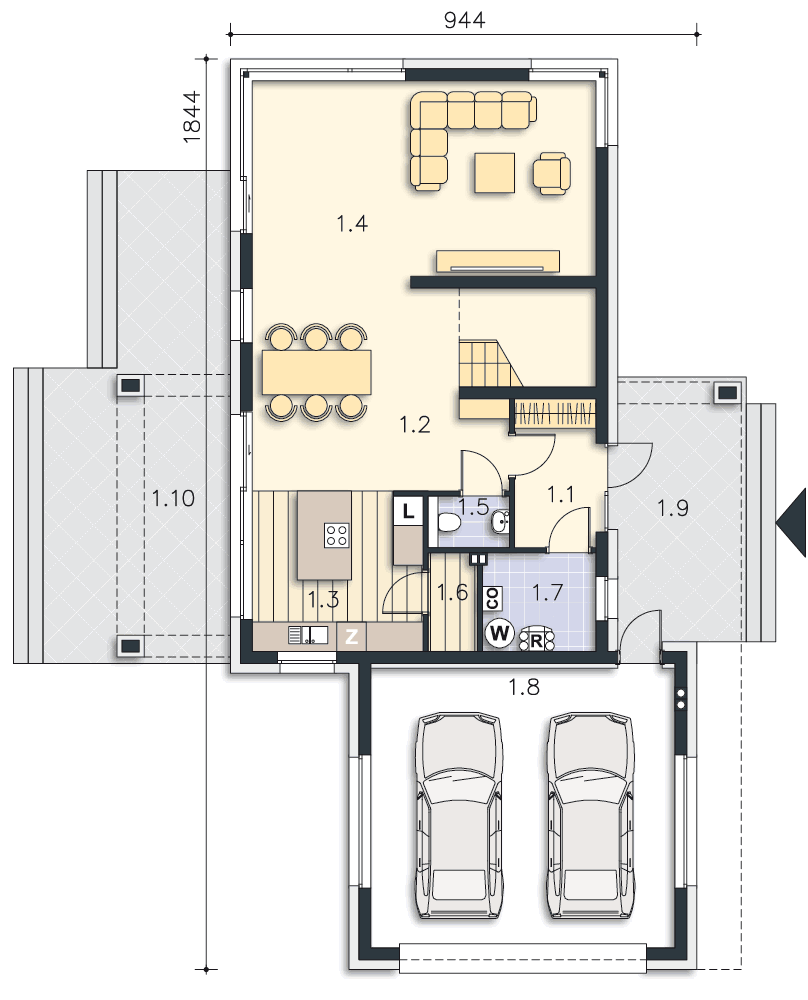 Одноэтажный дом 9x18 - 170.45 м2 за руб.