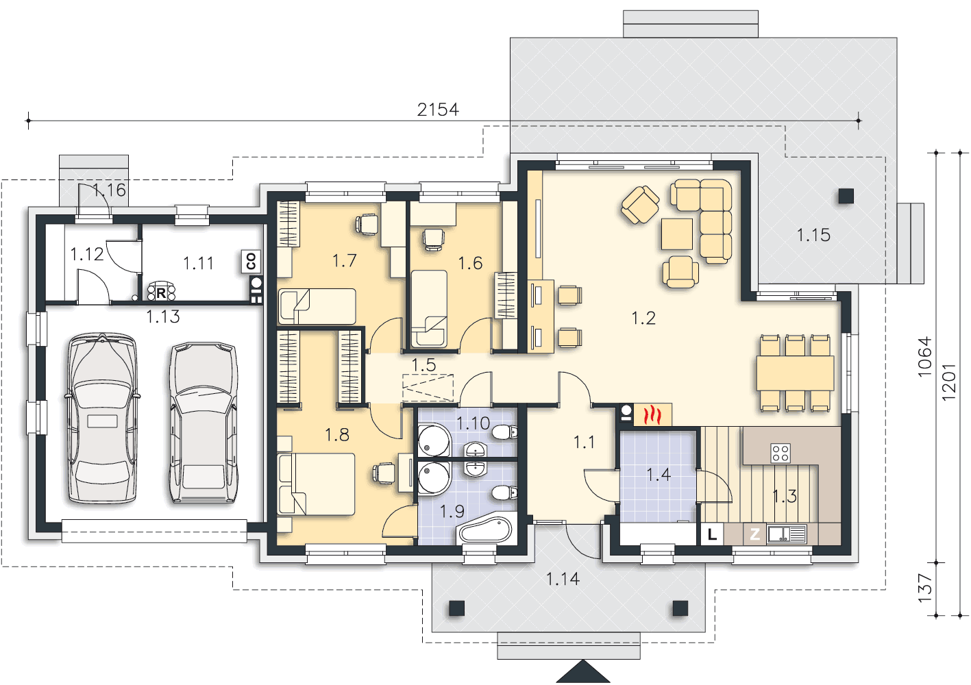 Одноэтажный дом 21x10 - 162.84 м2 за руб.