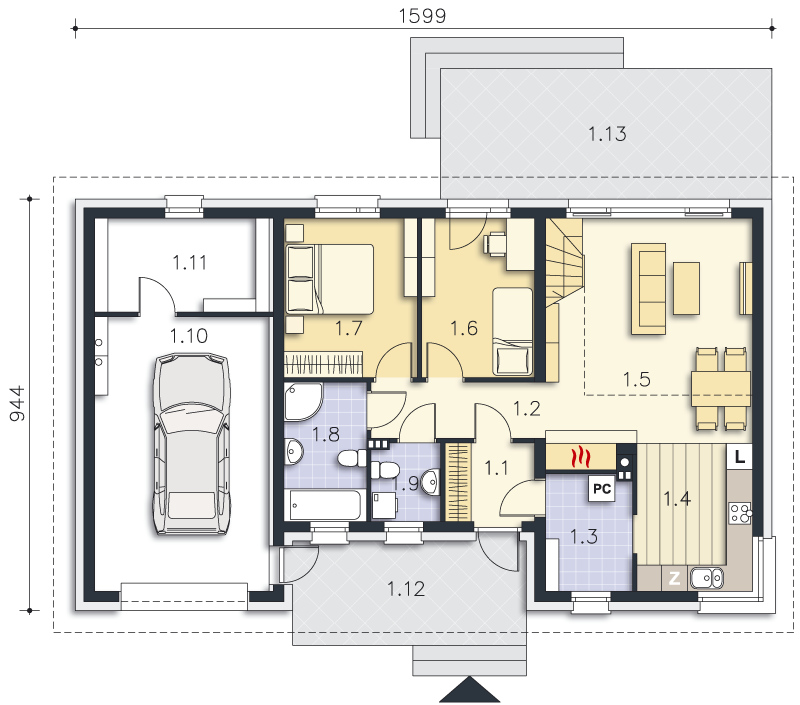 Одноэтажный дом 16x9 - 144.93 м2 за руб.