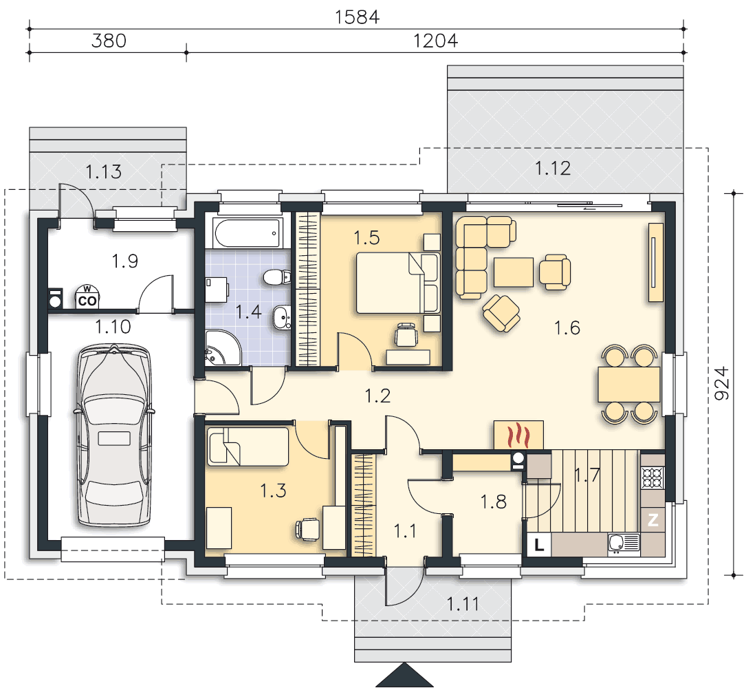 Одноэтажный дом 15x9 - 114.89 м2 за руб.