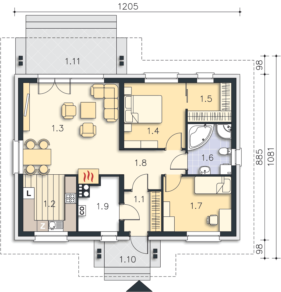 Одноэтажный дом 12x8 - 83.51 м2 за руб.