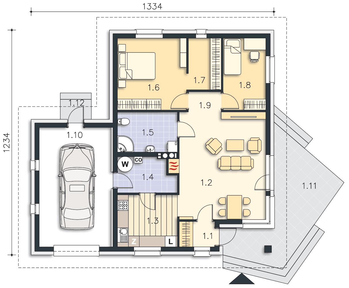 Одноэтажный дом 12x13 - 110.82 м2 за руб.