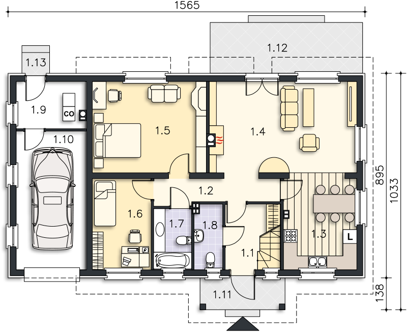 Одноэтажный дом 9x15 - 190.26 м2 за руб.