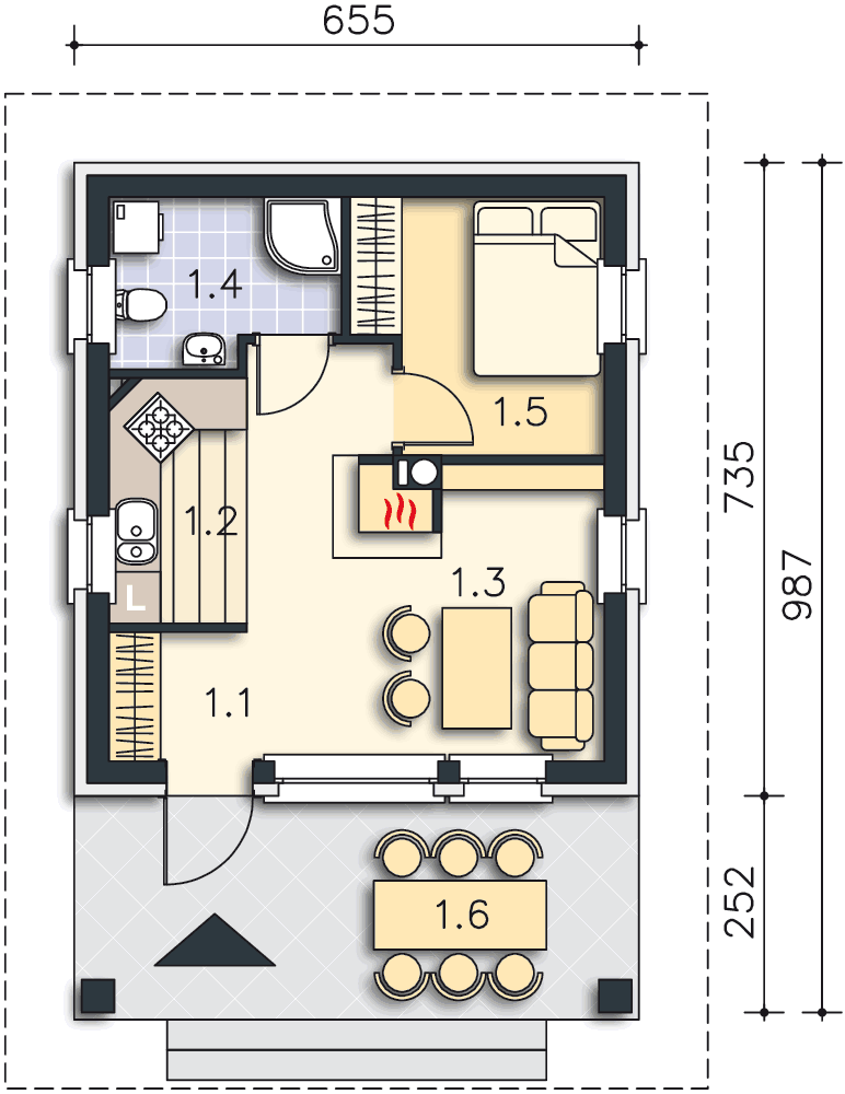 Одноэтажный дом 6x7 - 36.01 м2 за руб.
