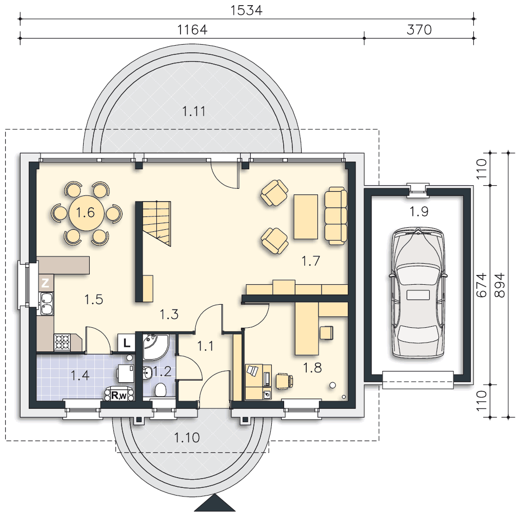 Одноэтажный дом 9x15 - 151.63 м2 за руб.