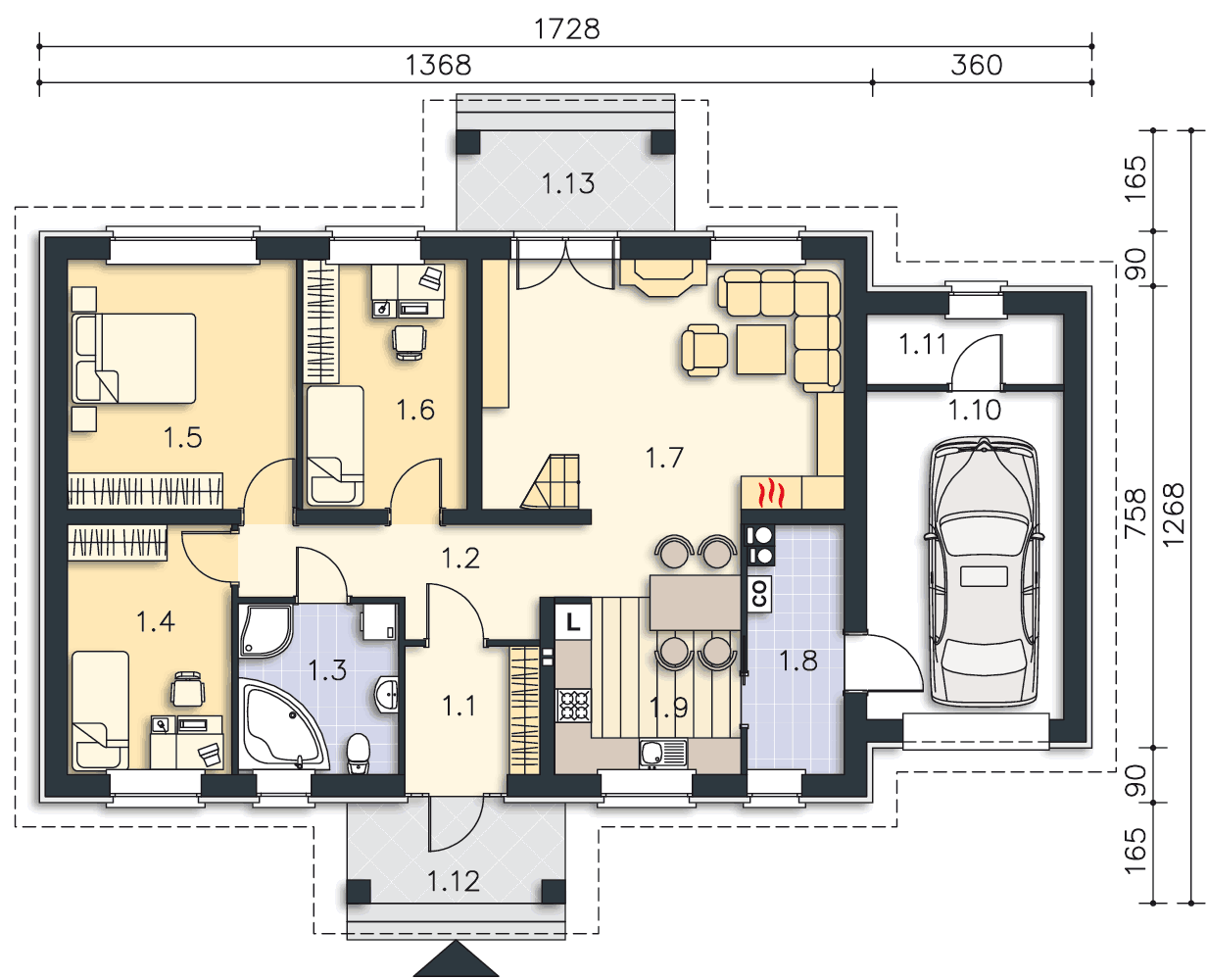 Одноэтажный дом 9x17 - 165.04 м2 за руб.