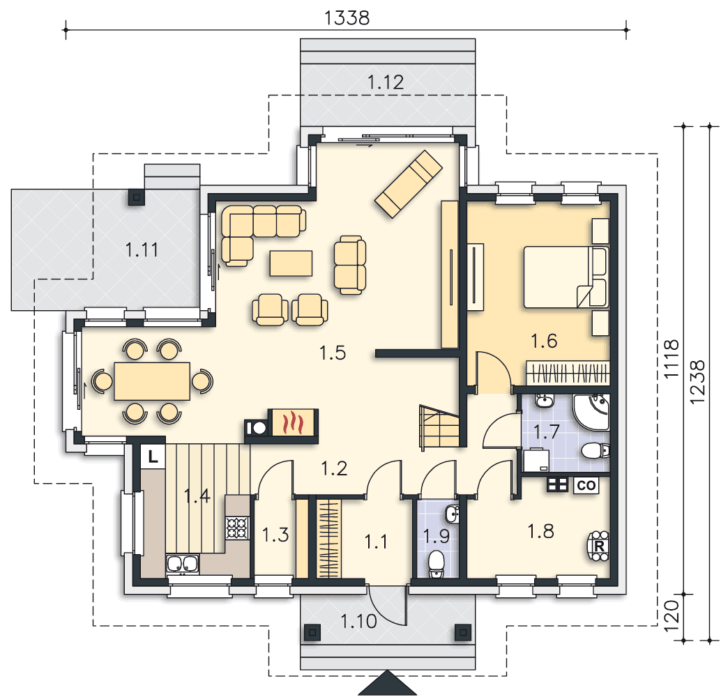 Одноэтажный дом 12x13 - 159.17 м2 за руб.