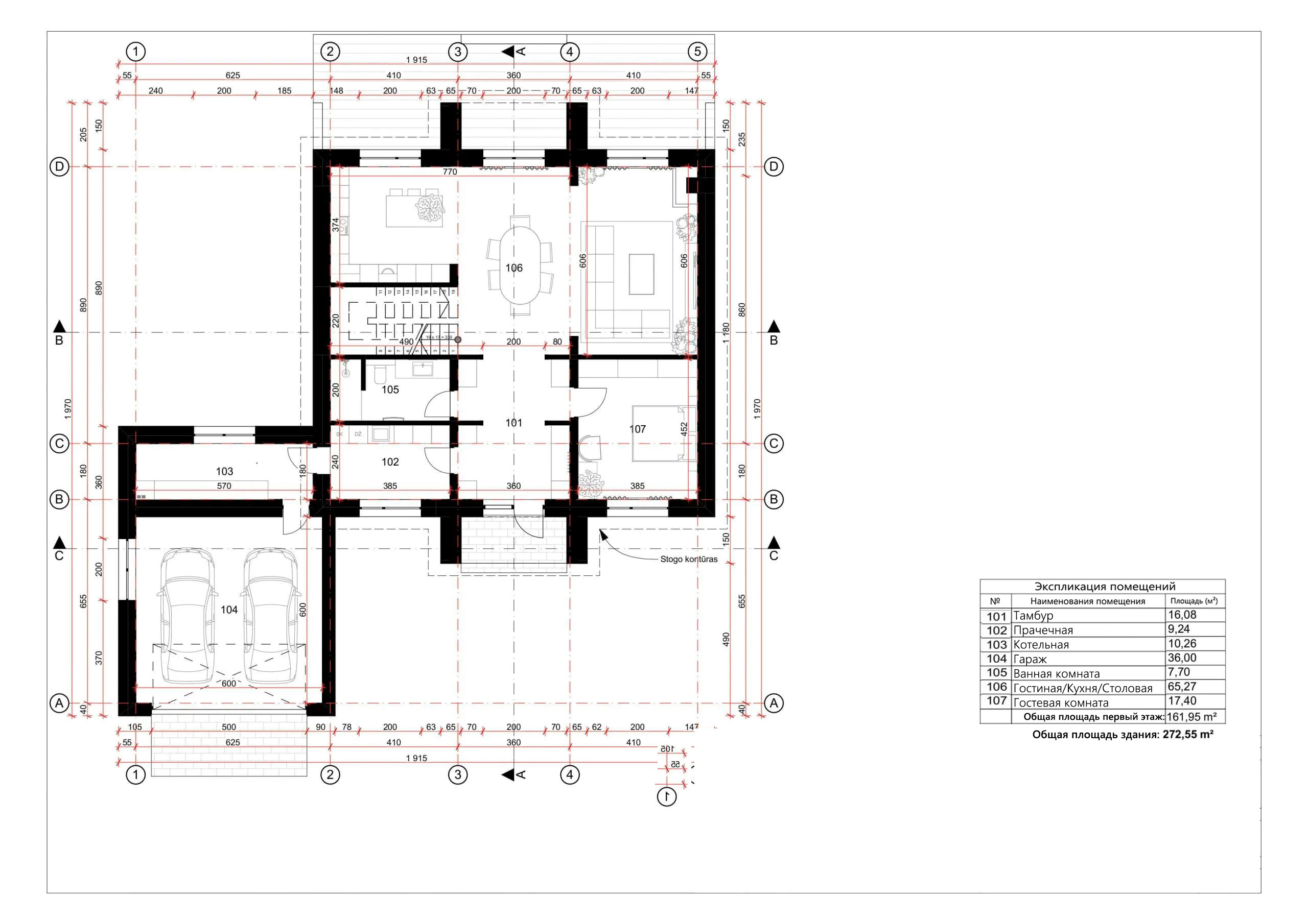 - Общая площадь первый этаж 161,95 м²