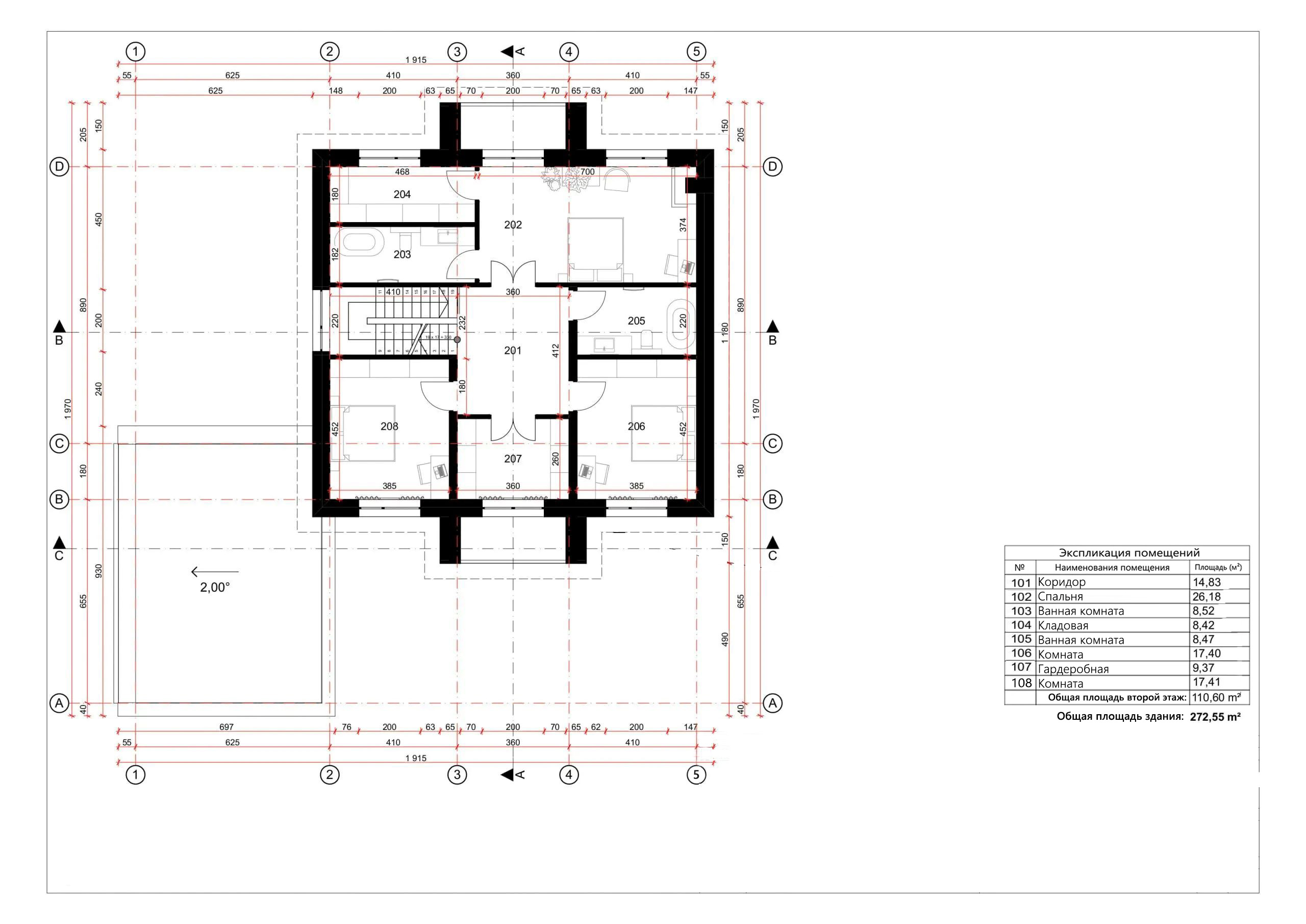 - Общая площадь второй этаж 110,60 м²