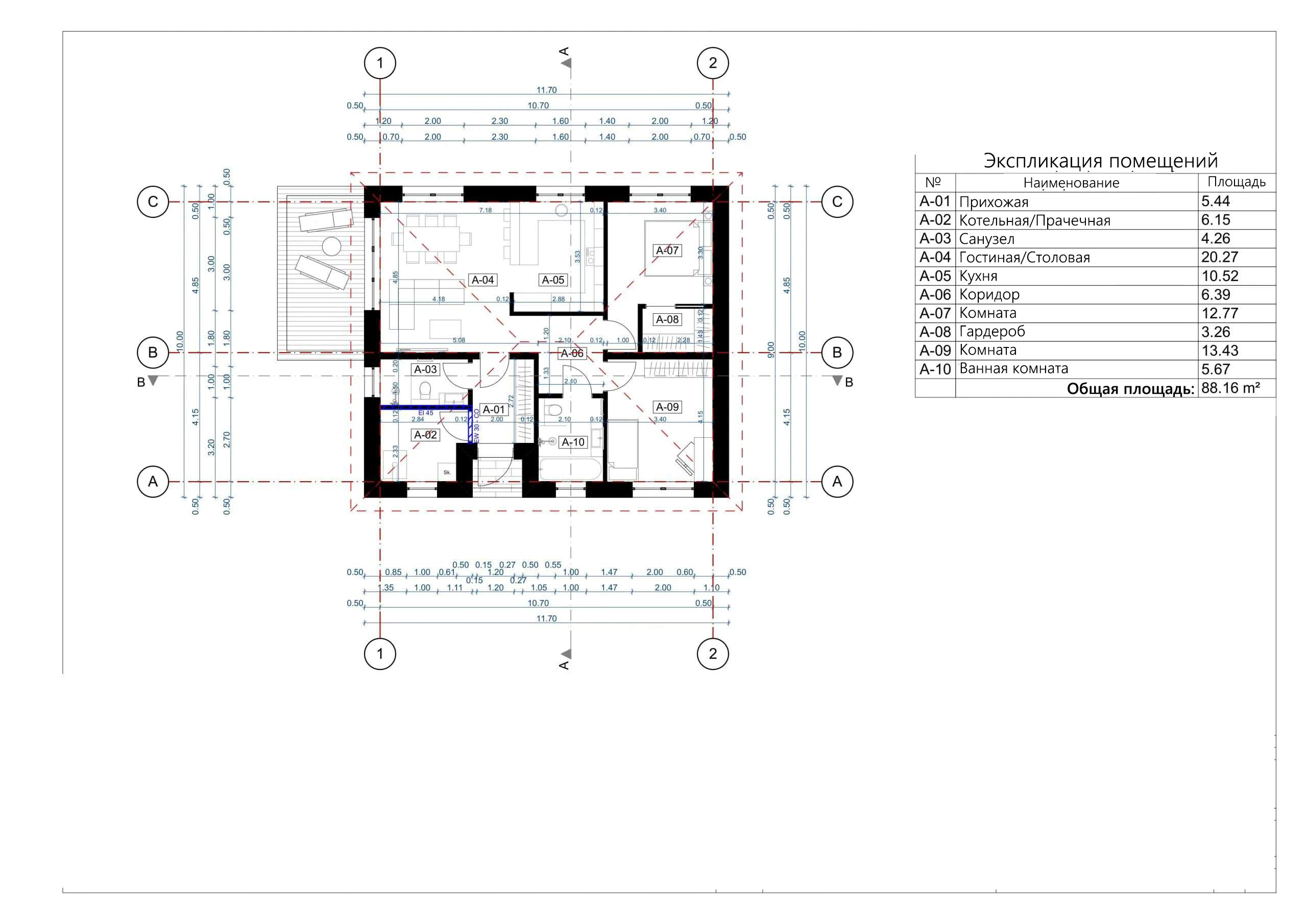 | 1 | 1 этаж | м2 | 108.64 | 88.16 |