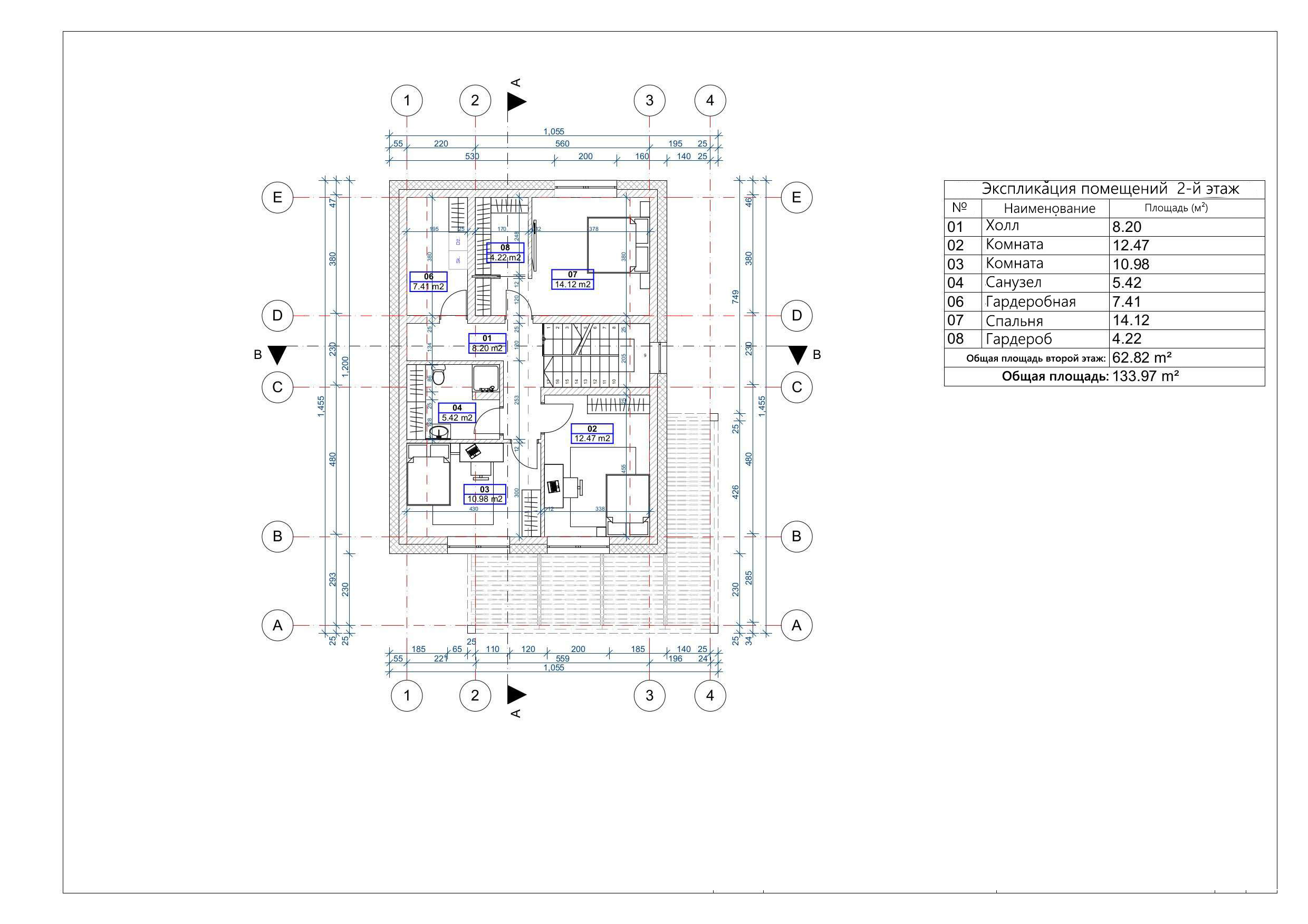 - Общая площадь второй этаж 62,82 м²