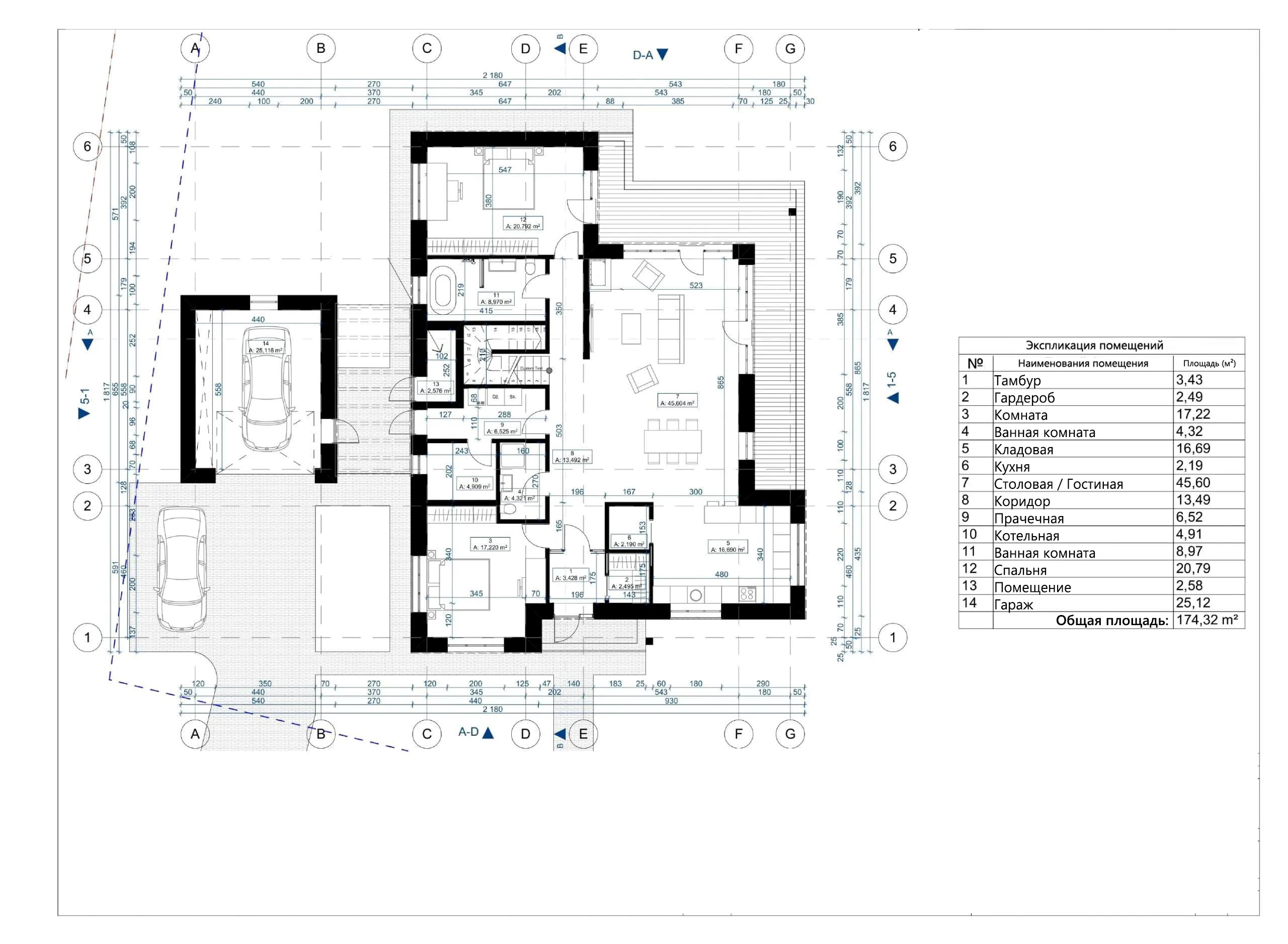 - Общая площадь первый этаж 174,32 м²