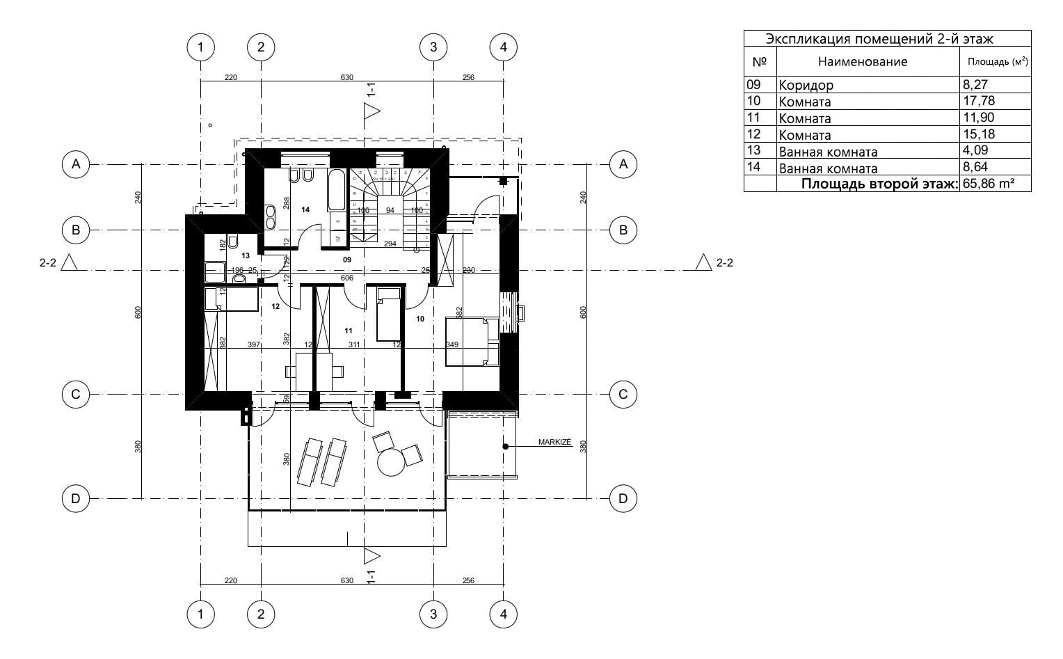 - Общая площадь второй этаж 65,86 м²