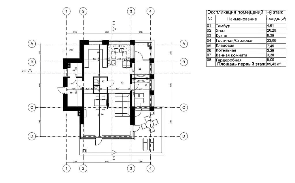 - Общая площадь первый этаж 89,42 м²