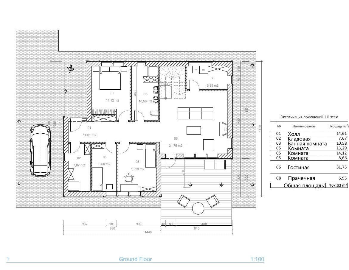 - Общая площадь первый этаж 93,52 м²
