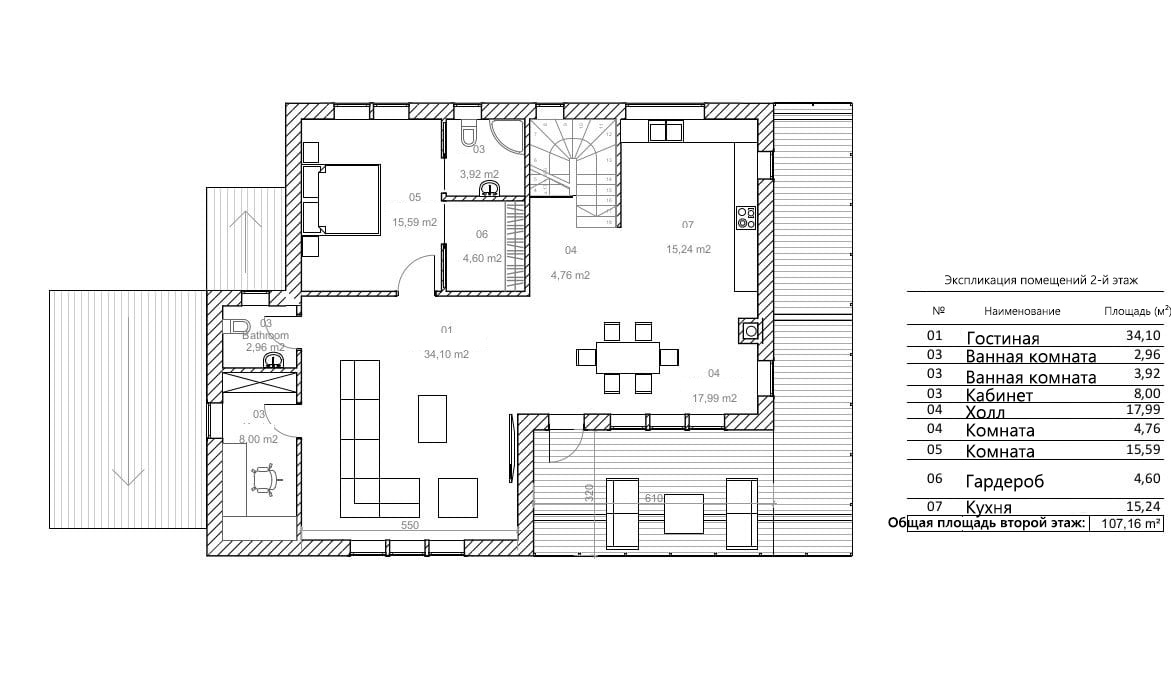 - Общая площадь второй этаж 102,56 м²