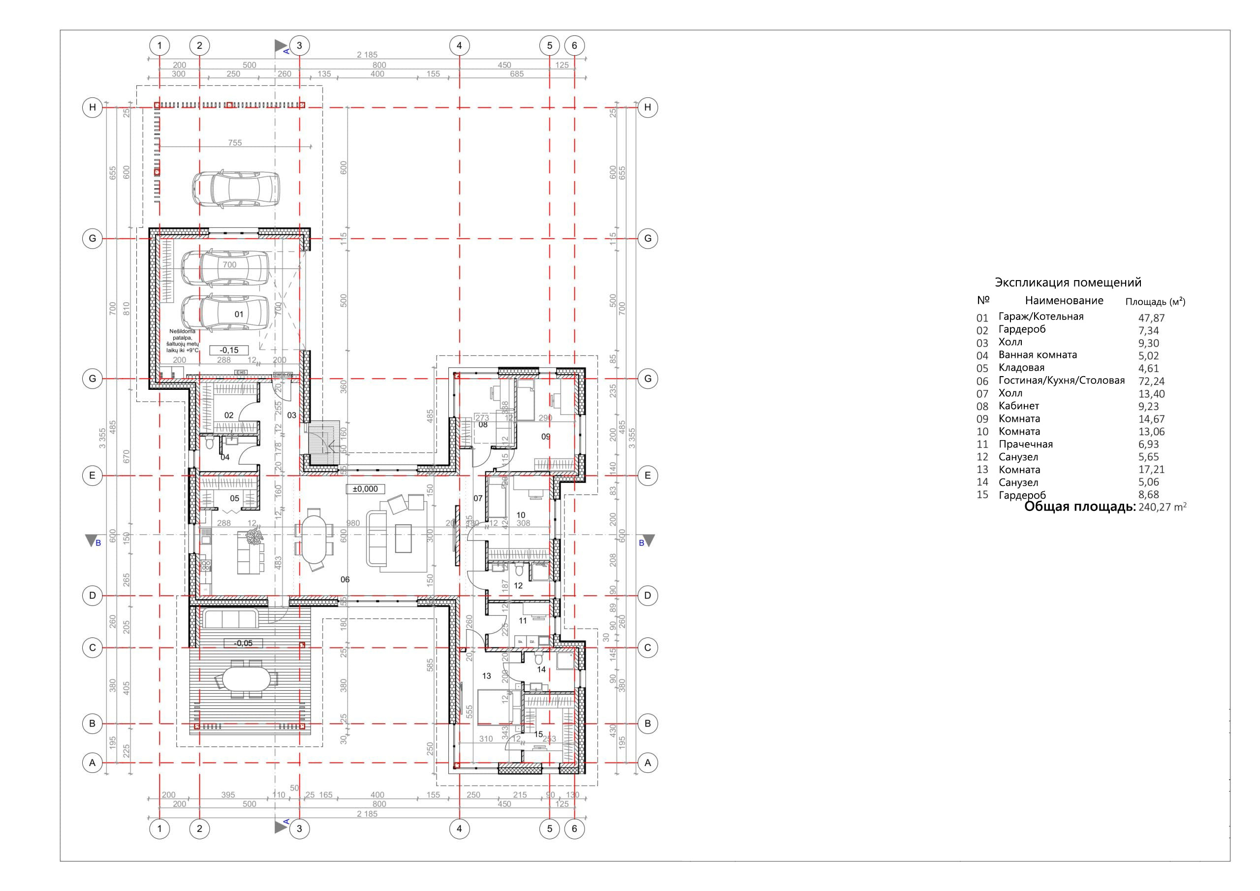 - Общая площадь первый этаж 240,27 м²
