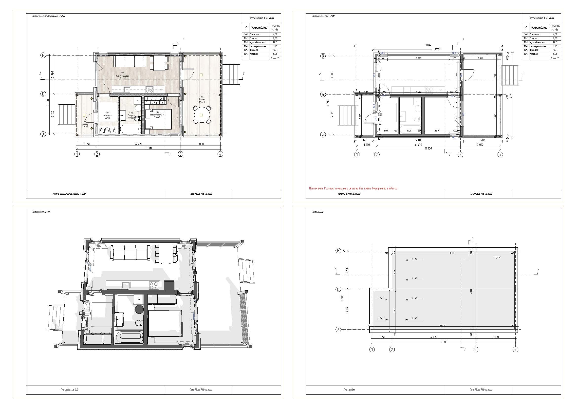 Одноэтажный дом 6x11 - 59.77 м2 за руб.