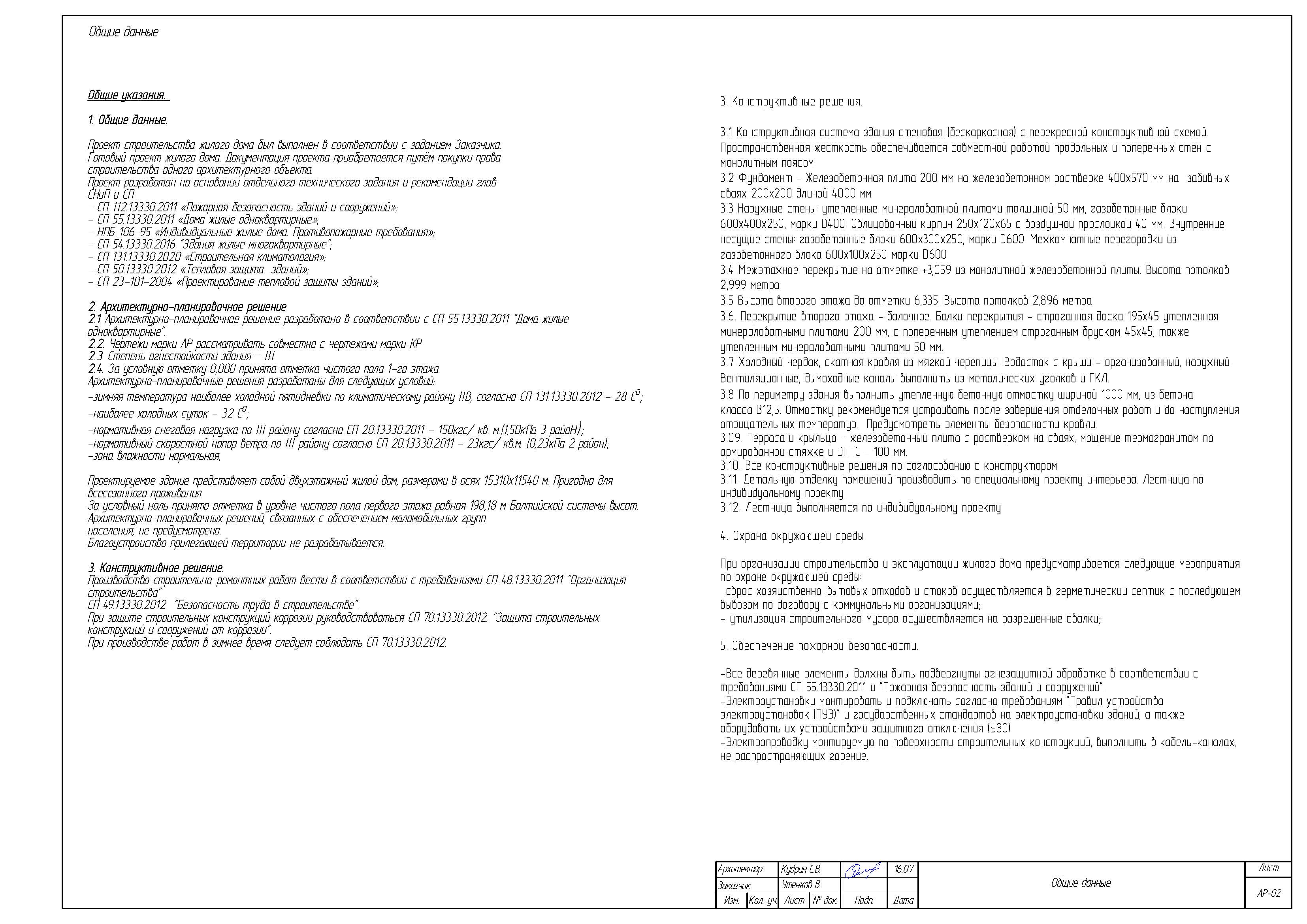 Проект cmpoumeльcmвa жилого дома был выполнен в coomвemcmвuu с заданием Заказчика.