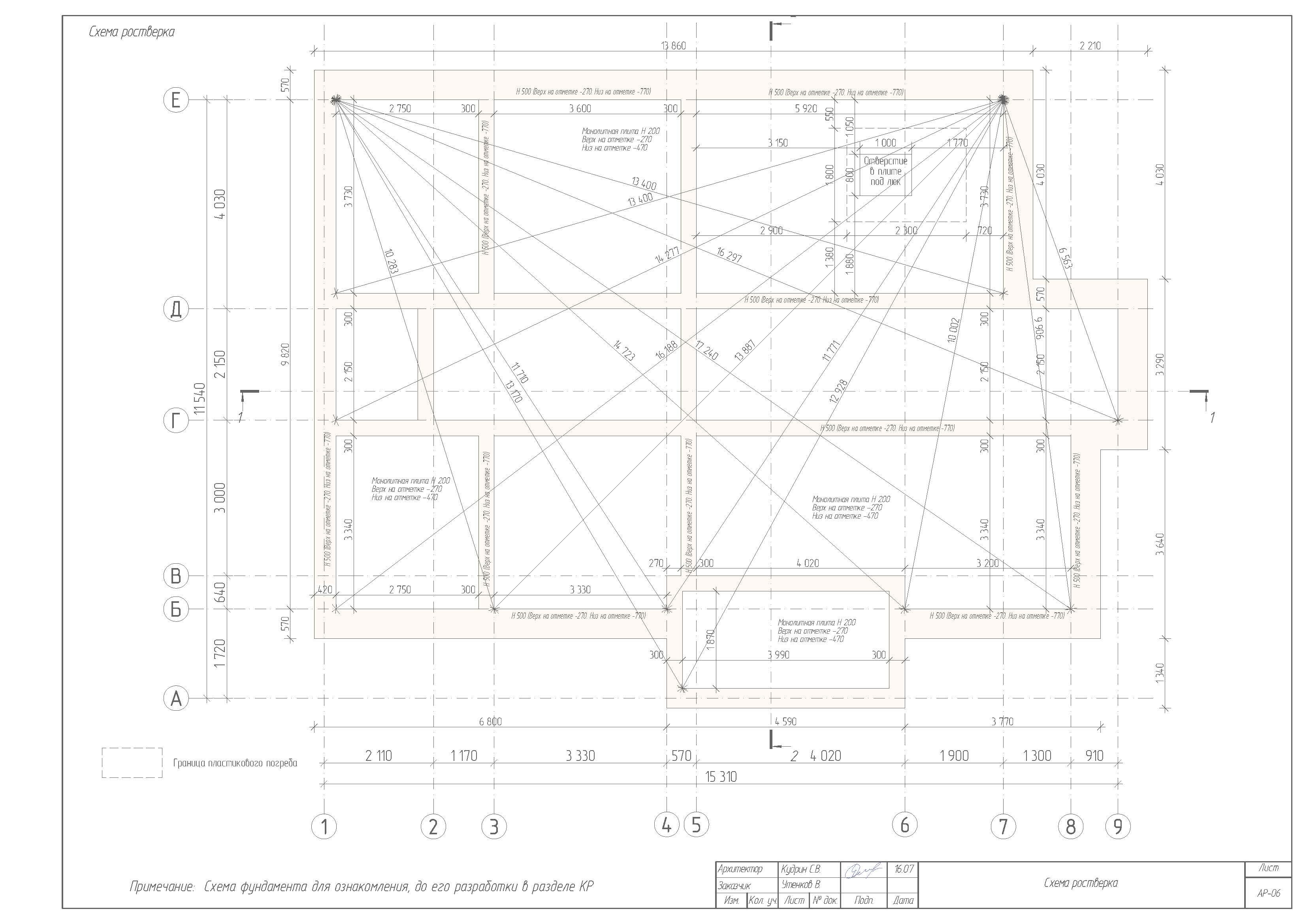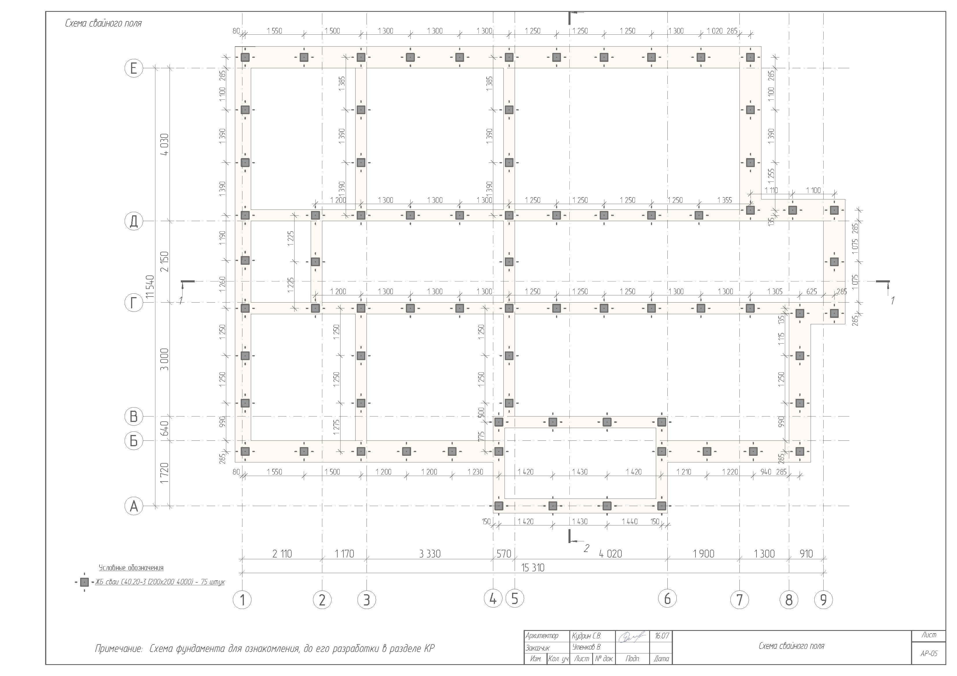 - Фундамент - Железобетонная плита 200 мм на железобетонном ростверке 400х570 мм на забивных сваях 200х200 длиной 4000 мм.