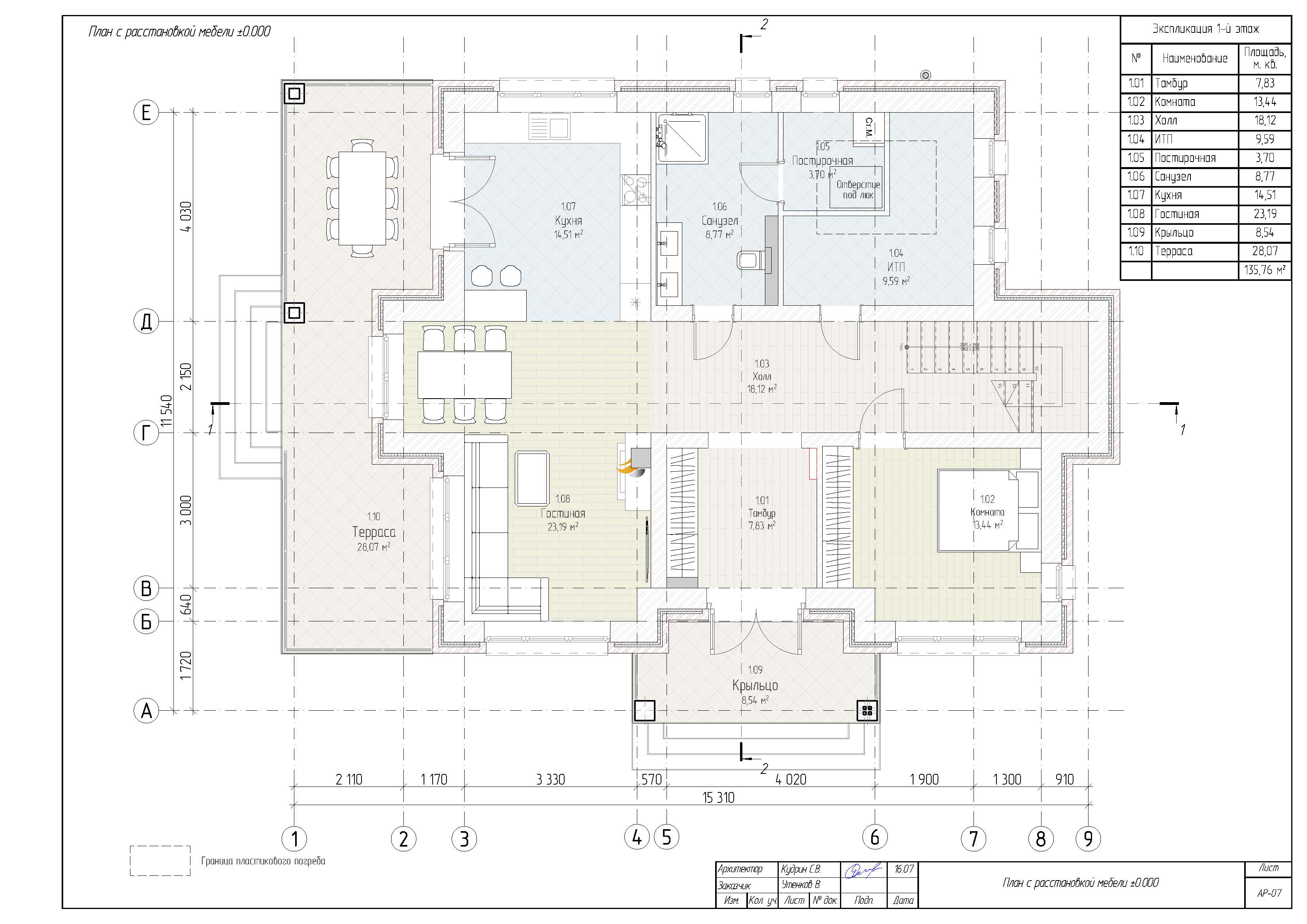 - Общая площадь первый этаж 135,76 м²