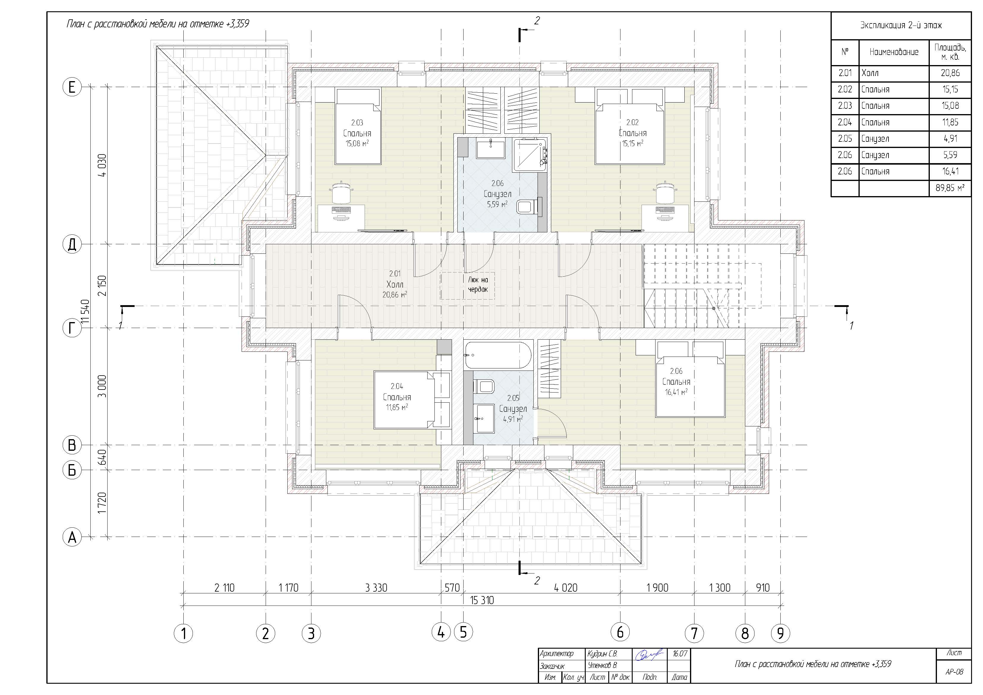 - Общая площадь второй этаж 89,85 м²