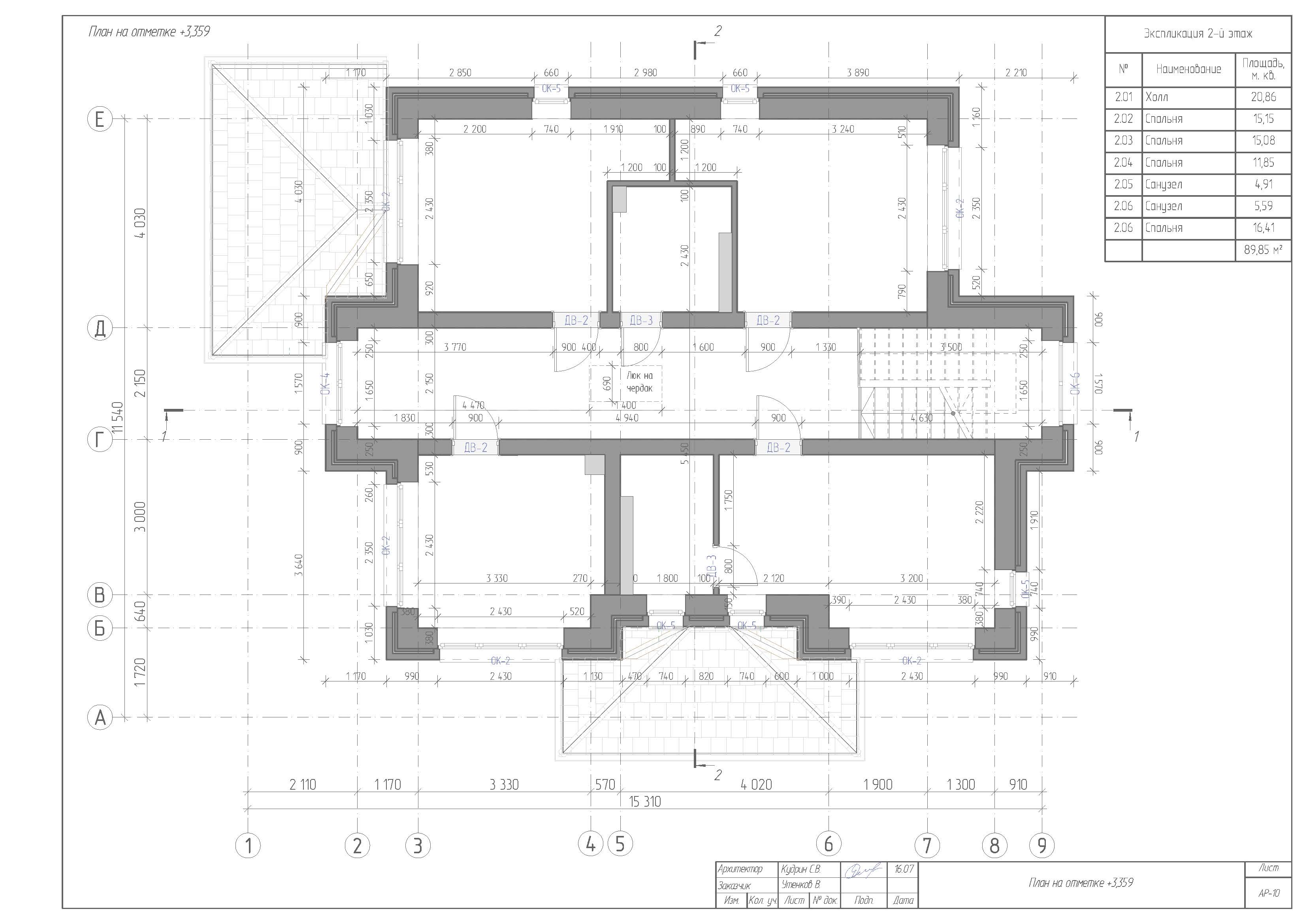 - Высота второго этажа до отметки 6,335. Высота потолков 2,896 метра.