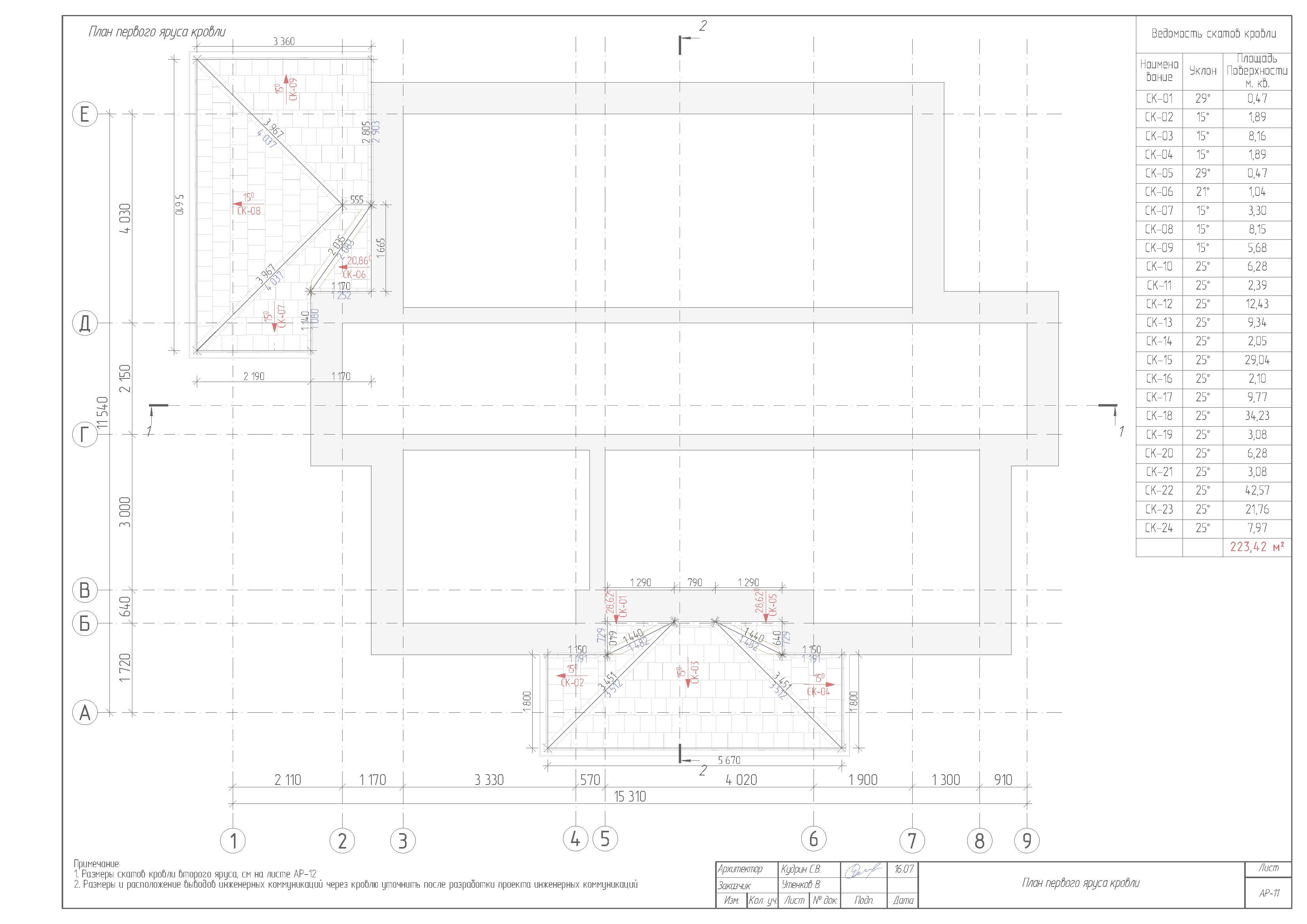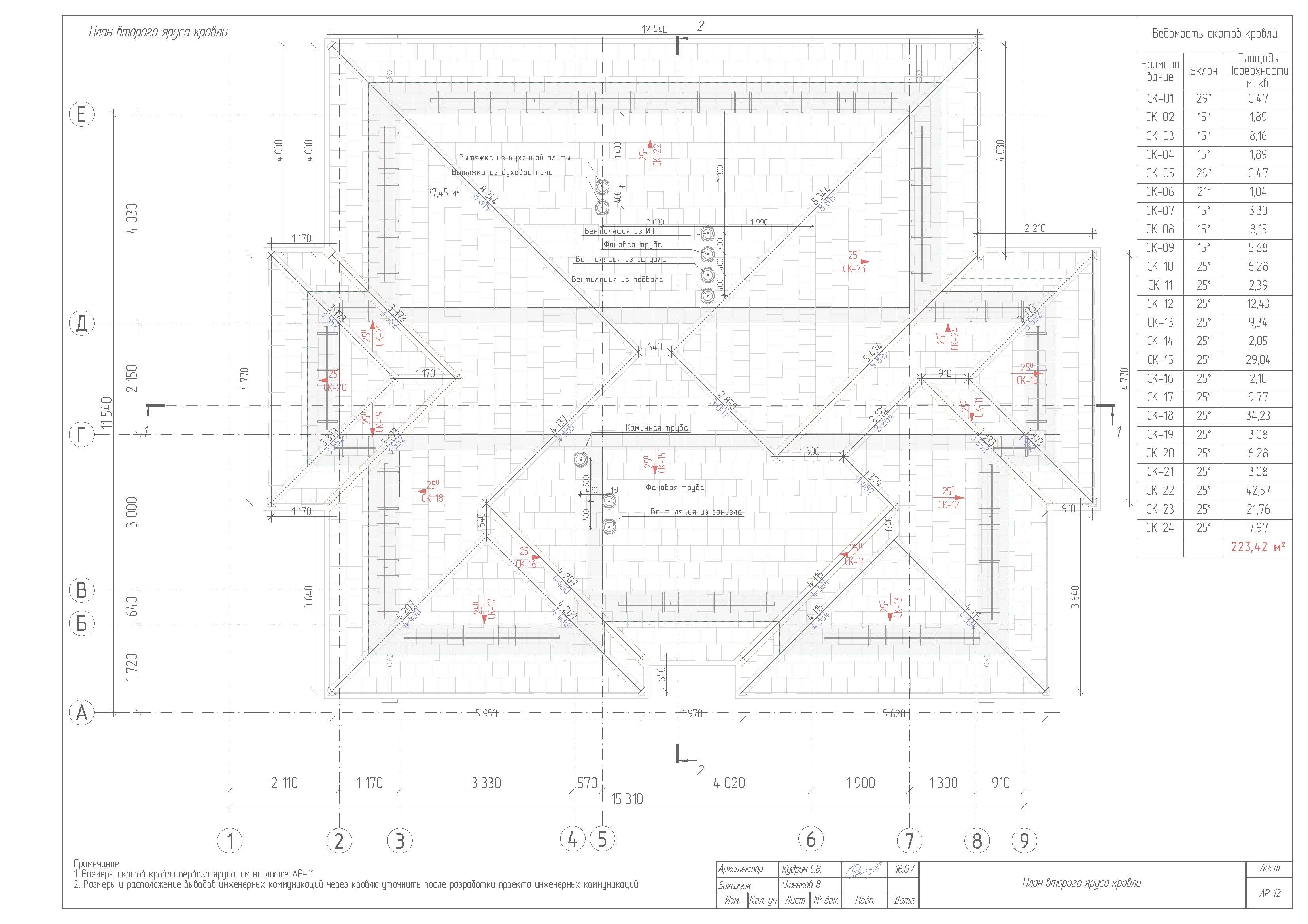 - Холодный чердак, скатная кровля из мягкой черепицы.. Водосток с крыши - организованный, наружный. Вентиляционные, дымоходные каналы выполнить из металических уголков и ГКЛ.