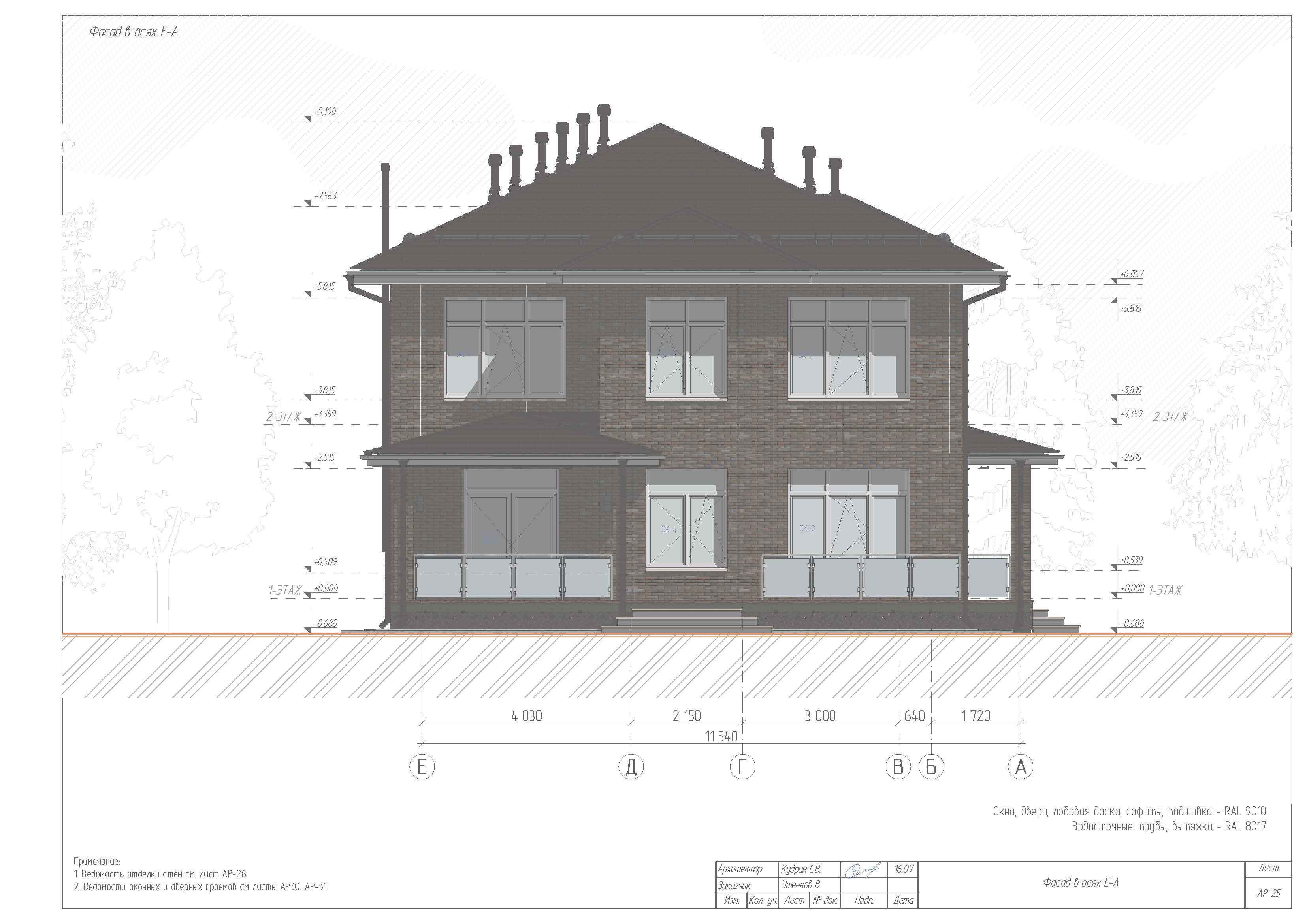 - Детальную отделку помешений производить по специальному проекту интерьера. Лестница по индивидуальному проекту.