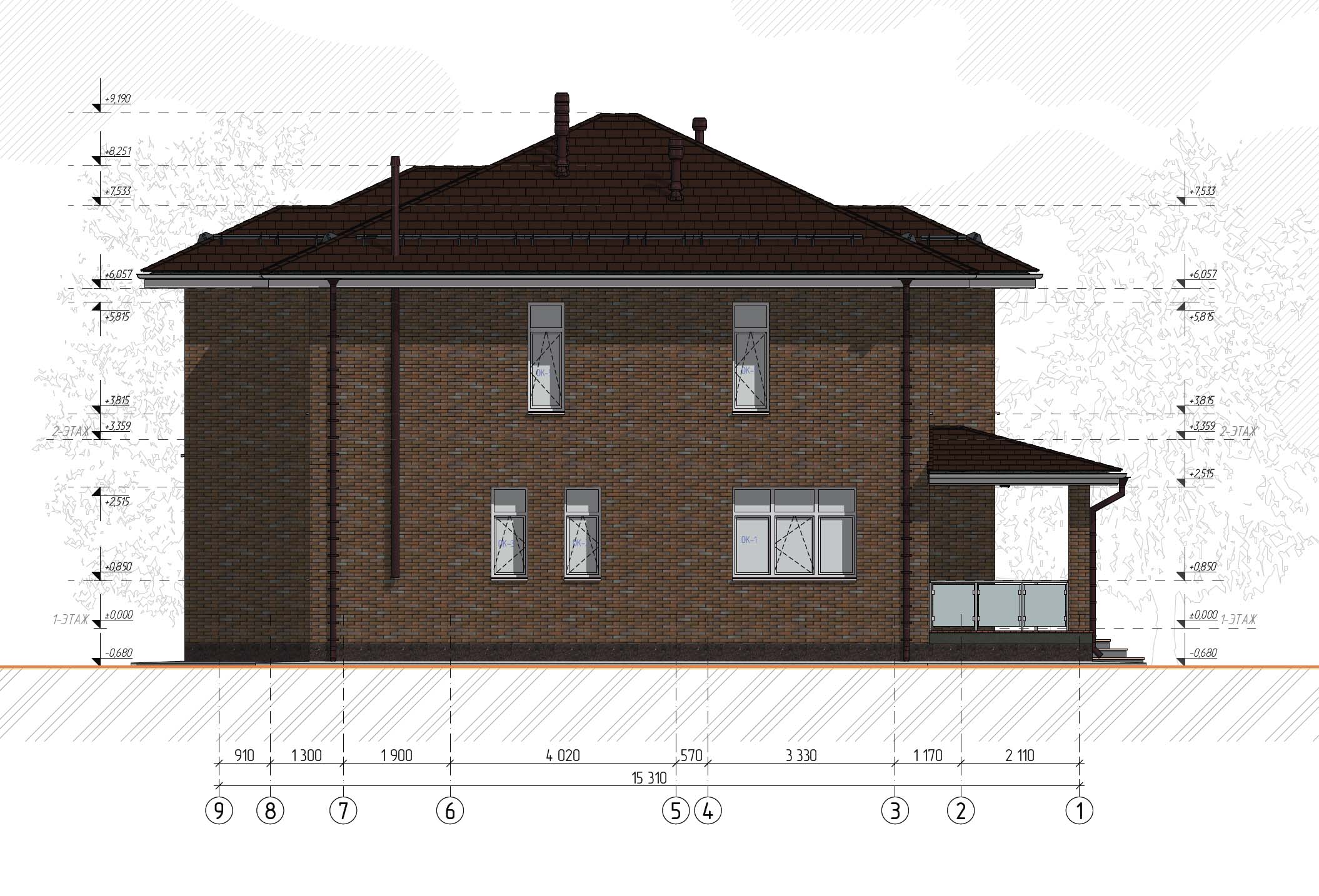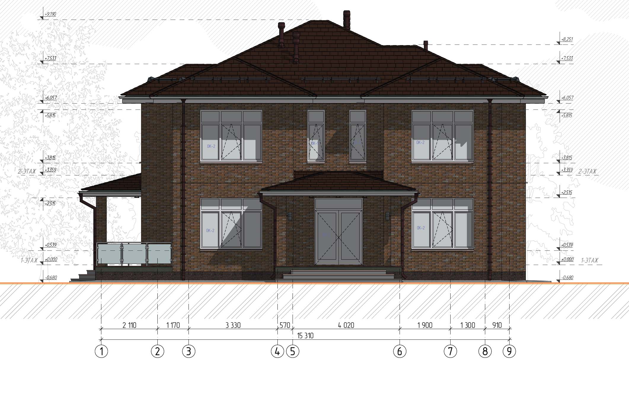Проекmuруемое здание представляет собой двухэтажный жилой дом, размерами в осях 15310x11540 м. Пригодно для всесезонного проживания.