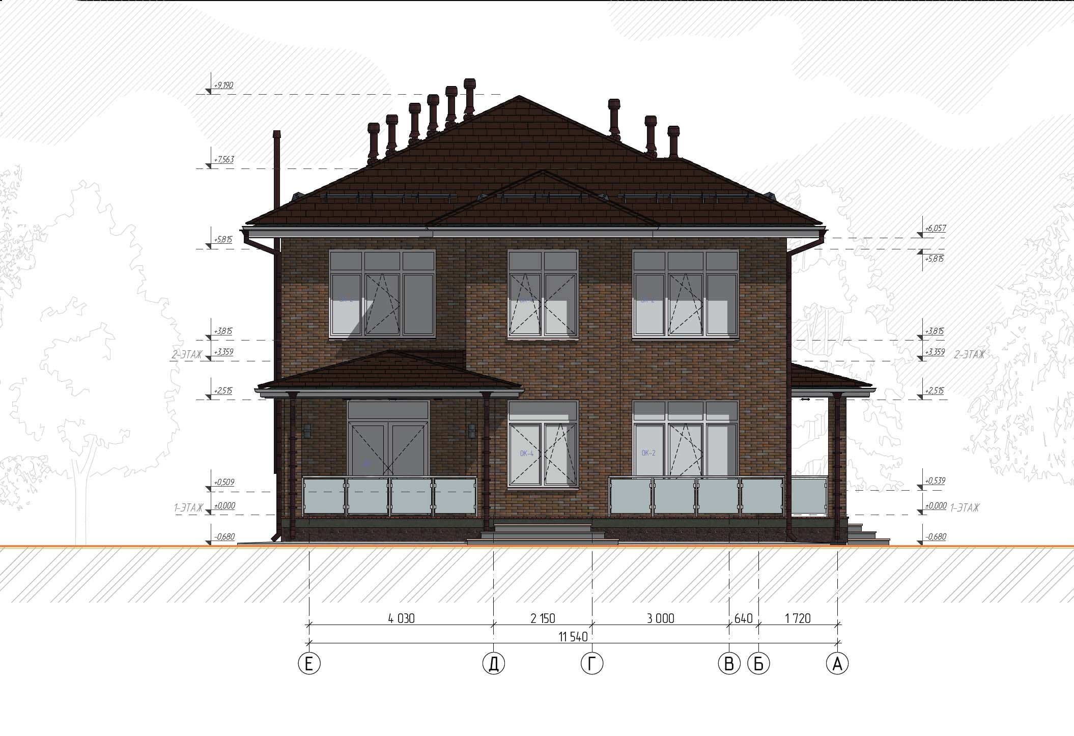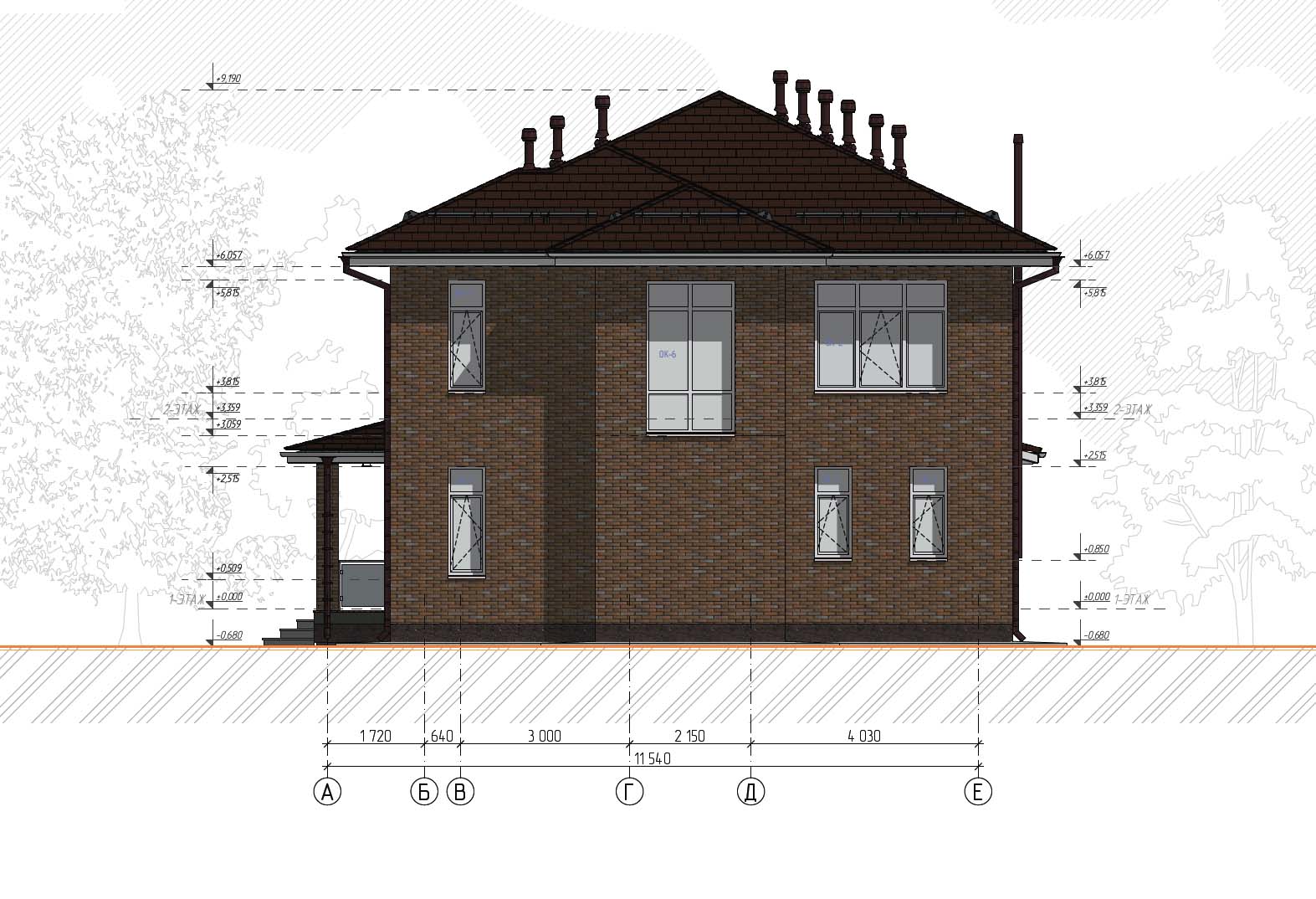 За условный ноль принято отметка в уровне чистого пола первого этажа равная 201,90 м Балтийской системы высот.
