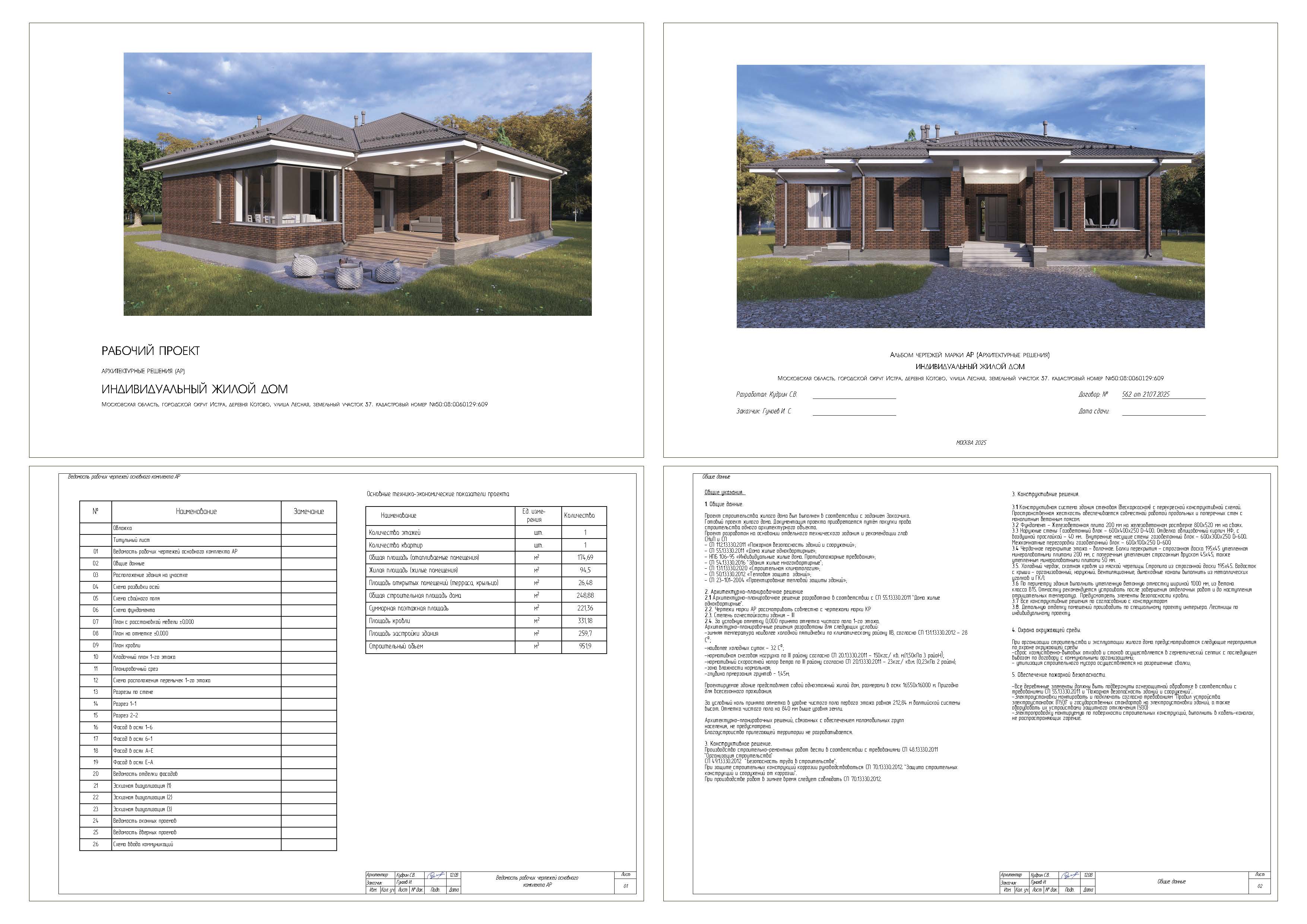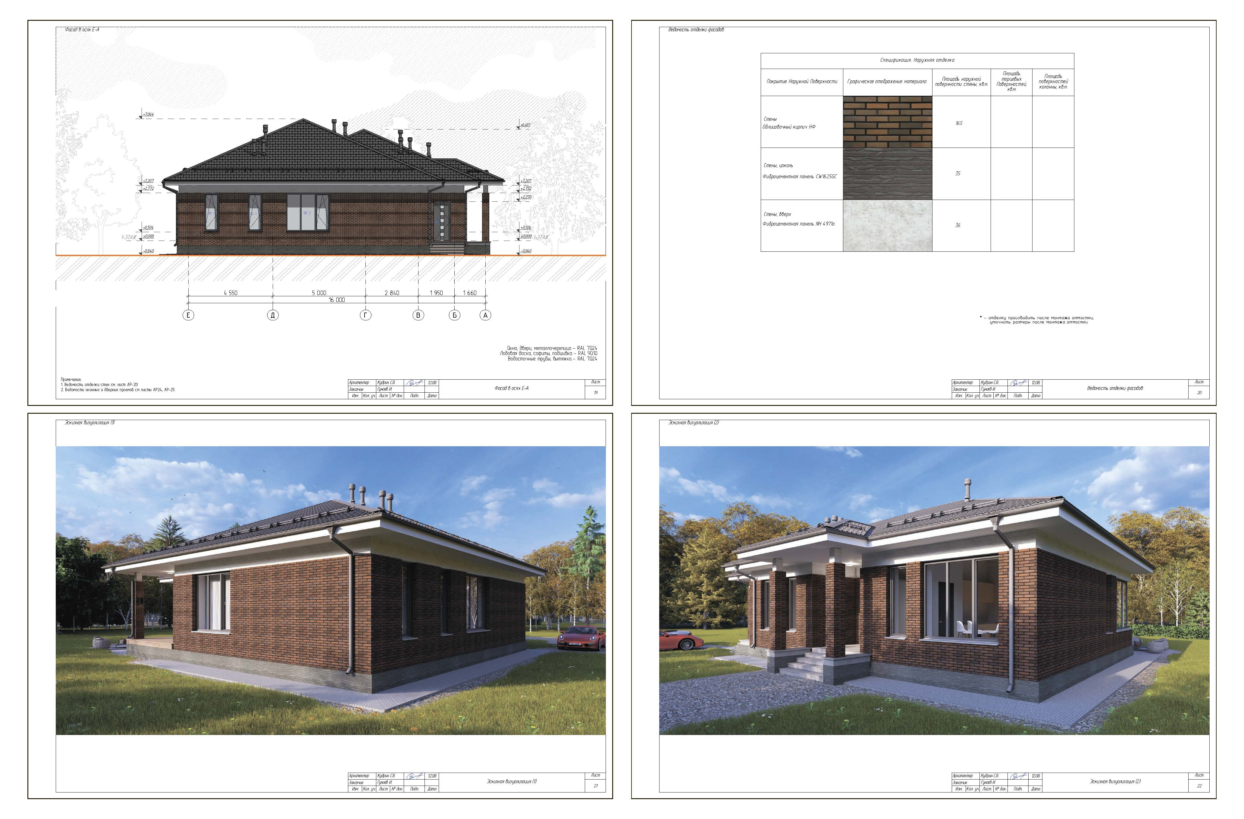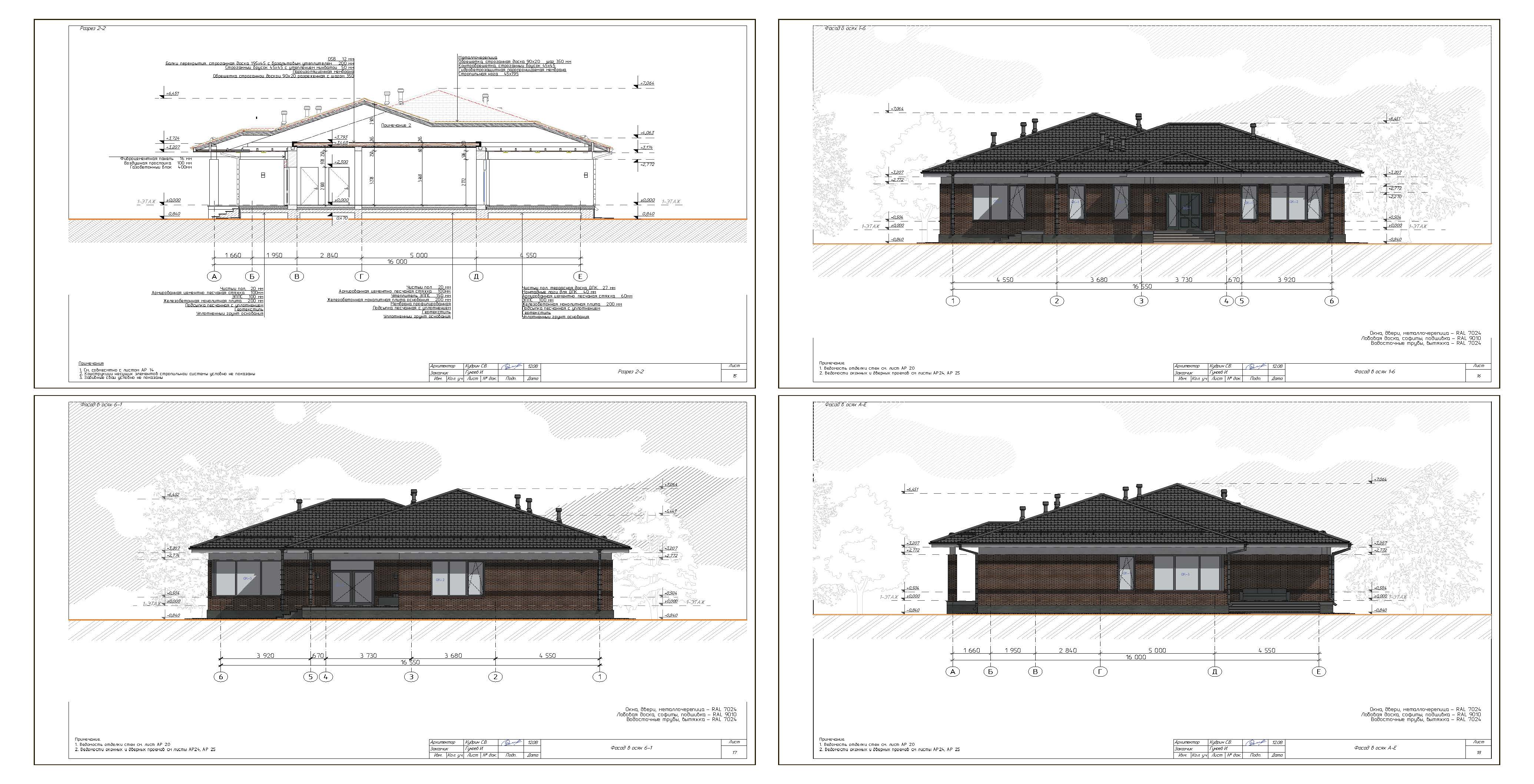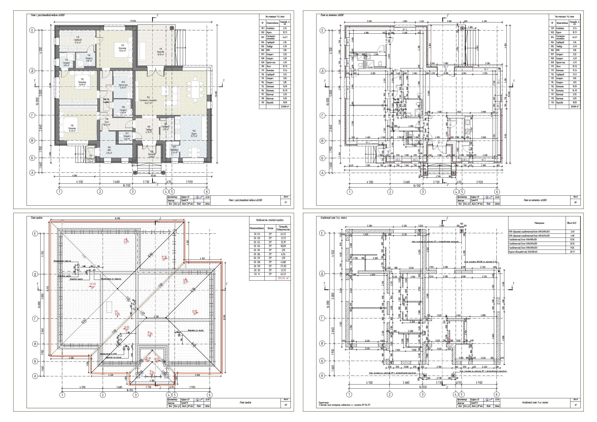 - Наружные стены: газобетонные блоки 600х400х250, марки D400.Отделка облицованный кирпич НФ с воздушной прослойкой - 40мм.