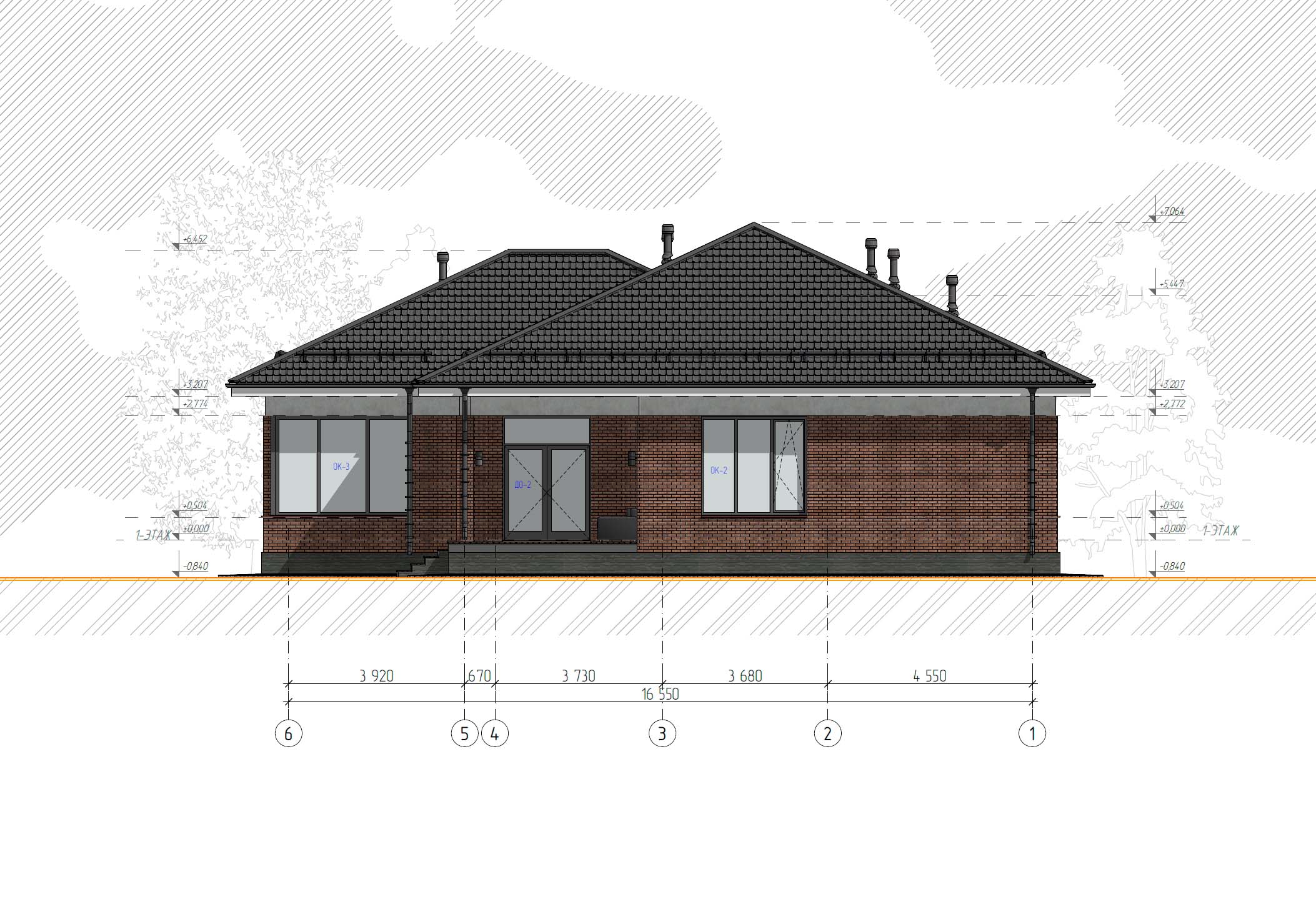 Проекmuруемое здание представляет собой одноэтажный жилой дом, размерами в осях 16550x16000 м. Пригодно для всесезонного проживания.