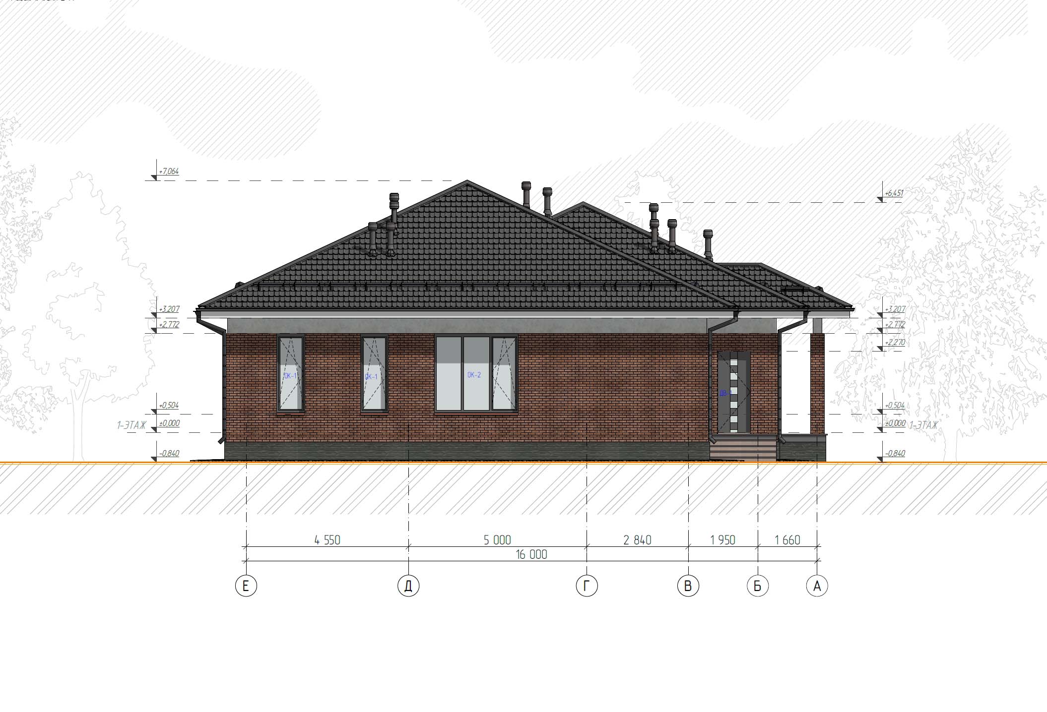 За условную отметку 0,000 принята отметка чucmoго пола 1-го этажа.