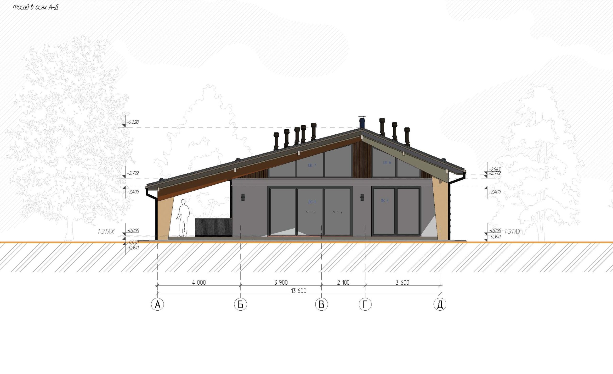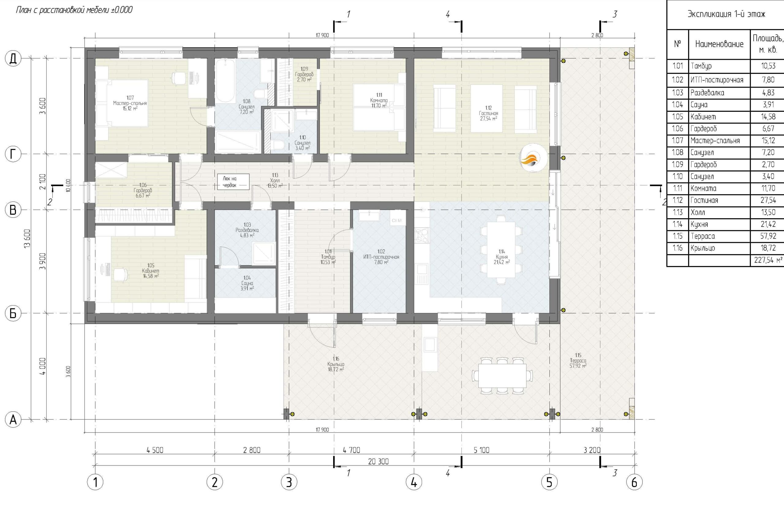 - Общая площадь 1 этажа 227,54 м²