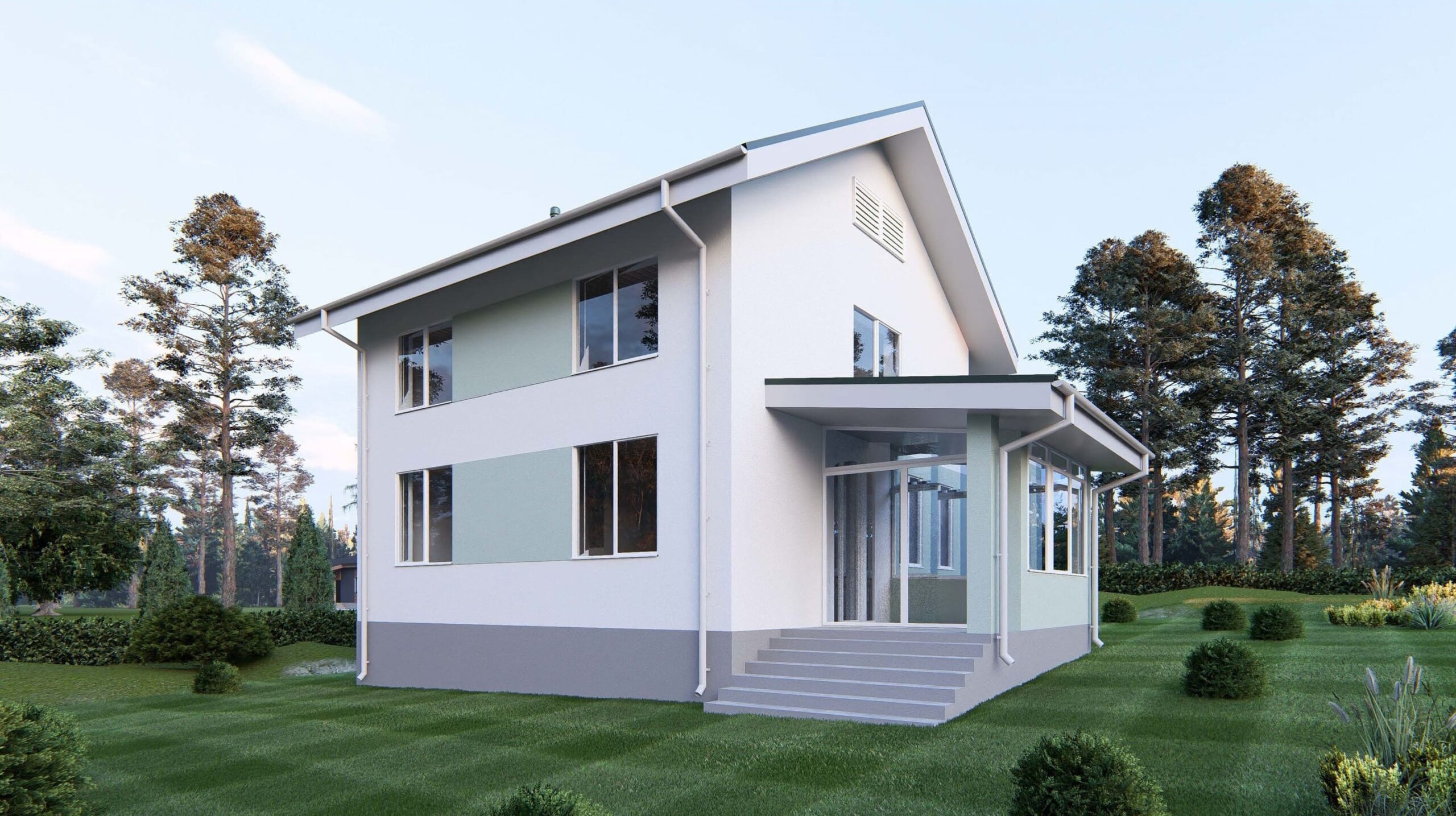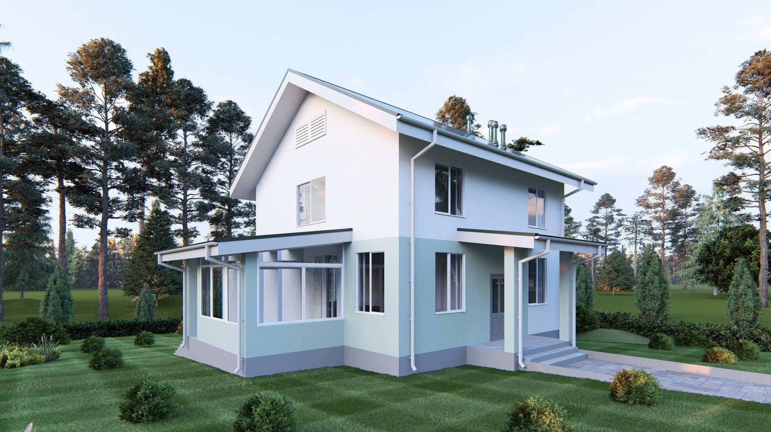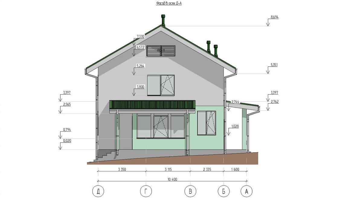 - Общая площадь 2 этажа 53,34 м²